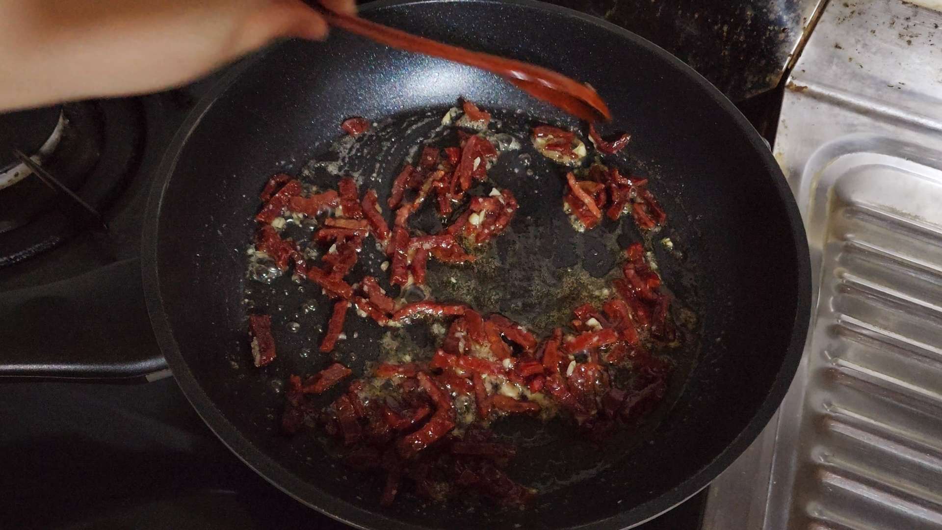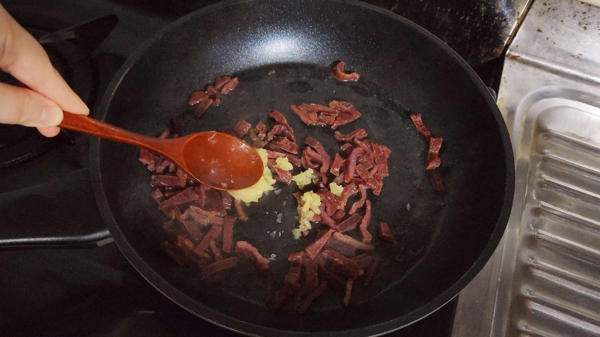 물이 졸아들기 시작하면 다진 마늘 0.5T를 넣고 볶아줍니다.