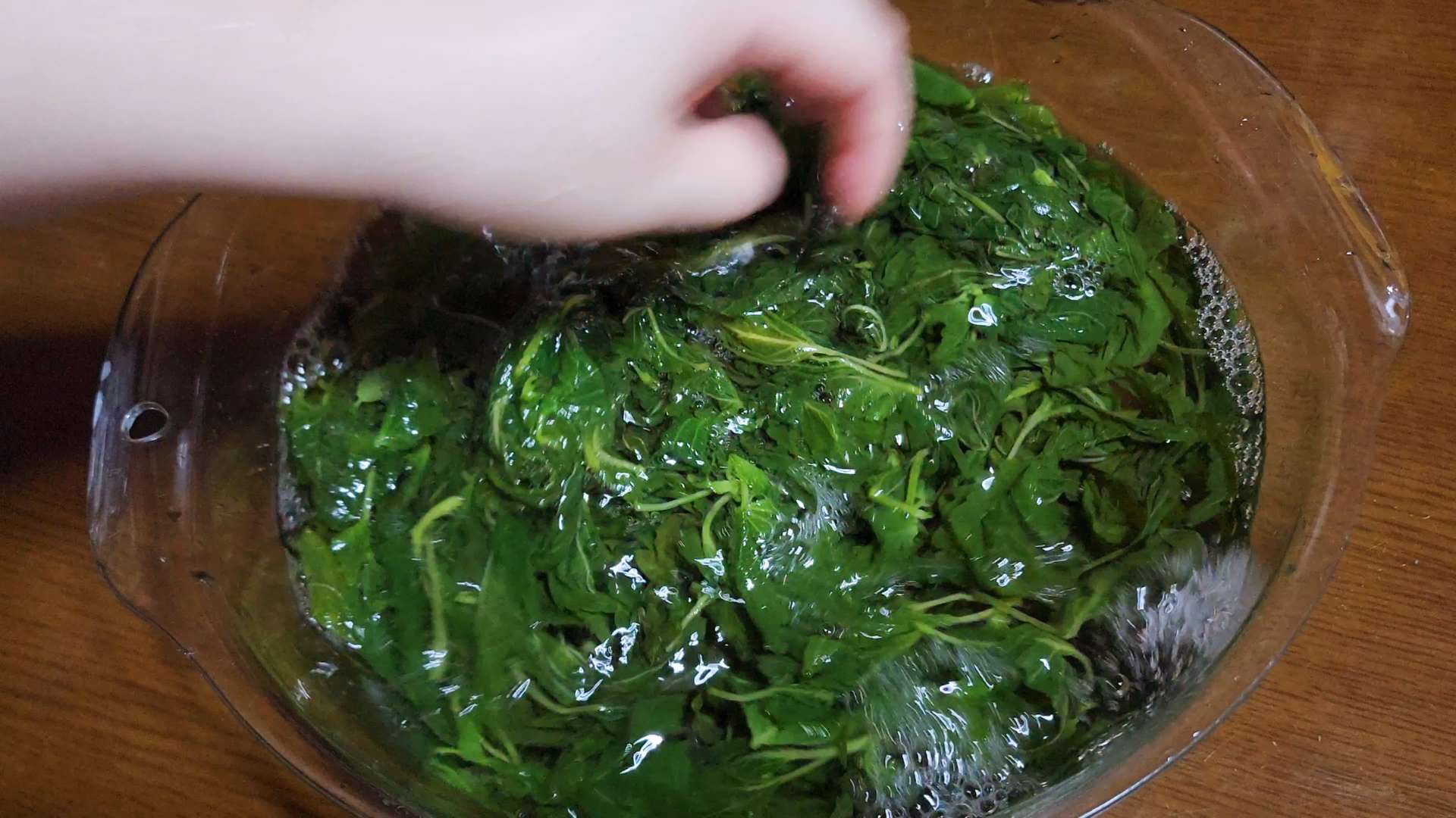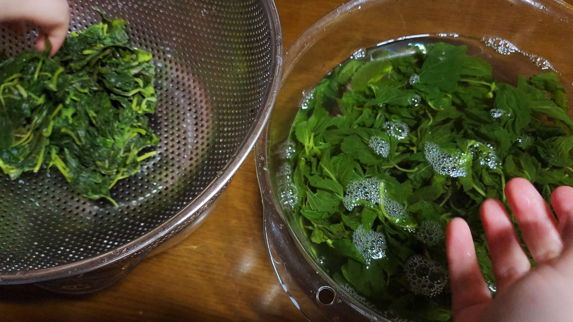 찬물에 깻잎순을 넣고 두번 헹궈줍니다.