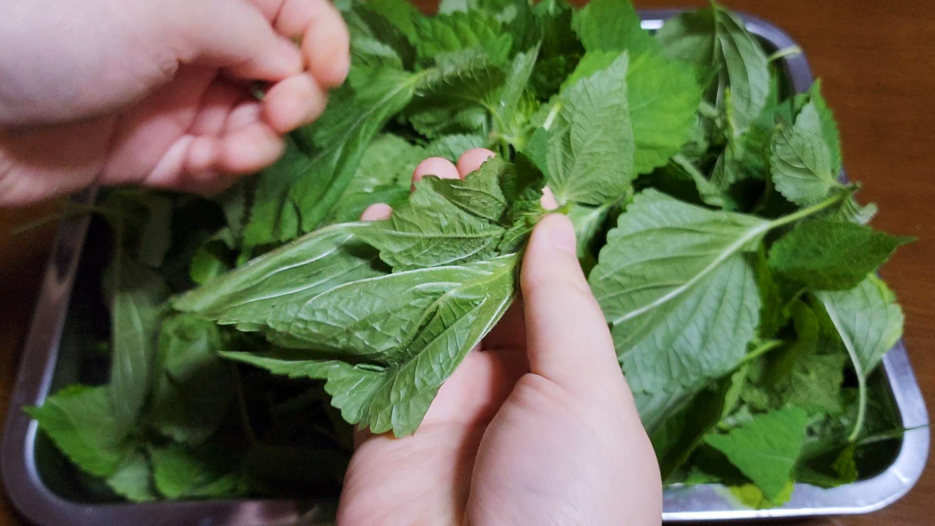 깻잎순은 억세고 굵은 줄기를 잘라줍니다.