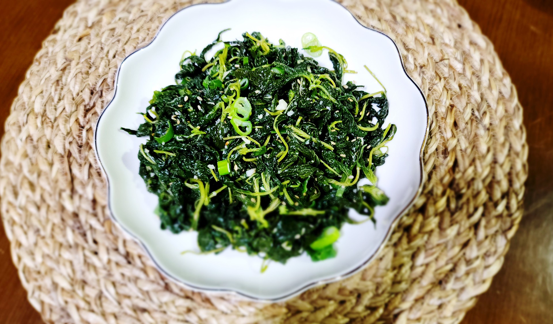재료: 깻잎순 200g, 대파 1/2대, 소금 1T,