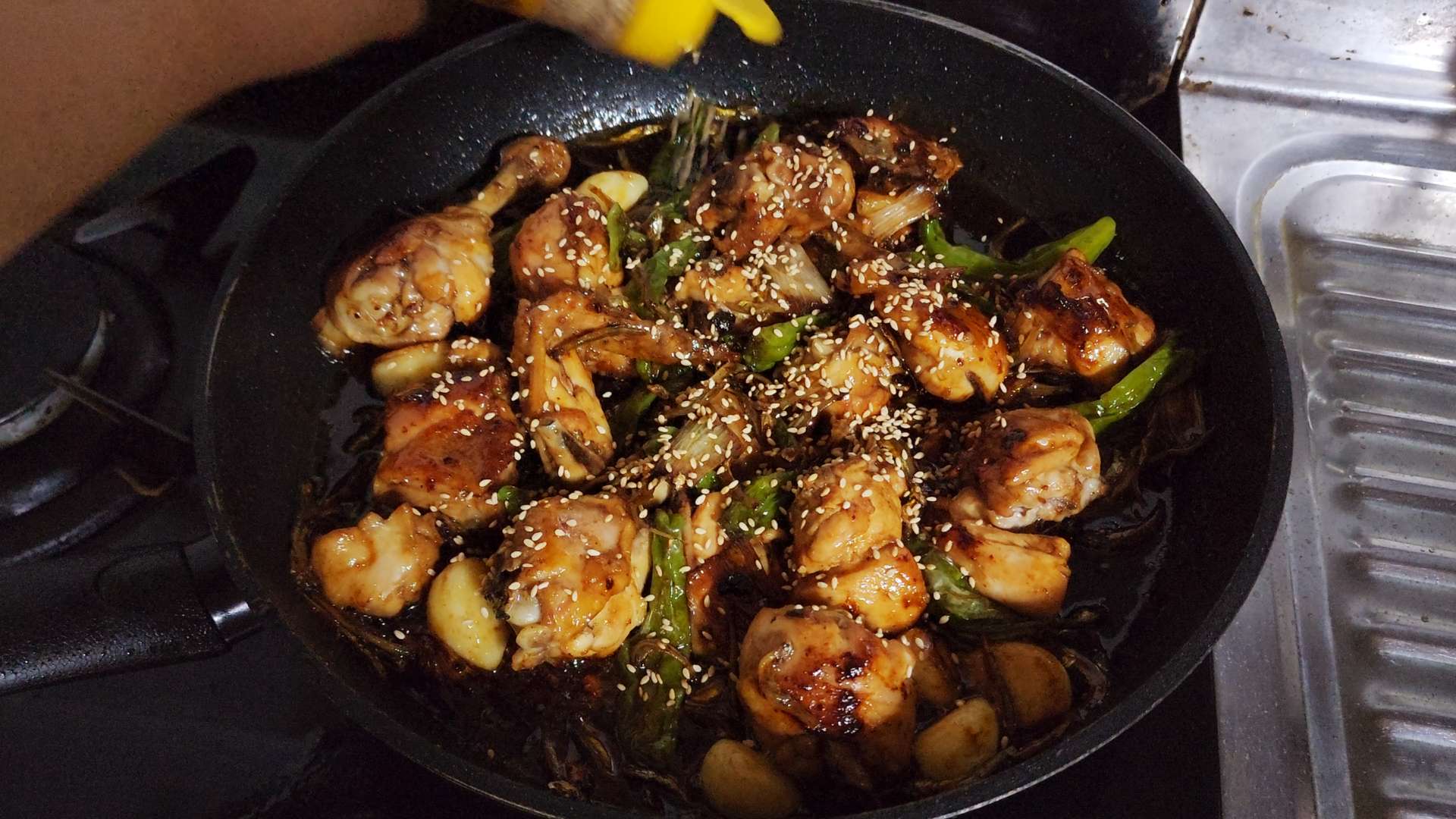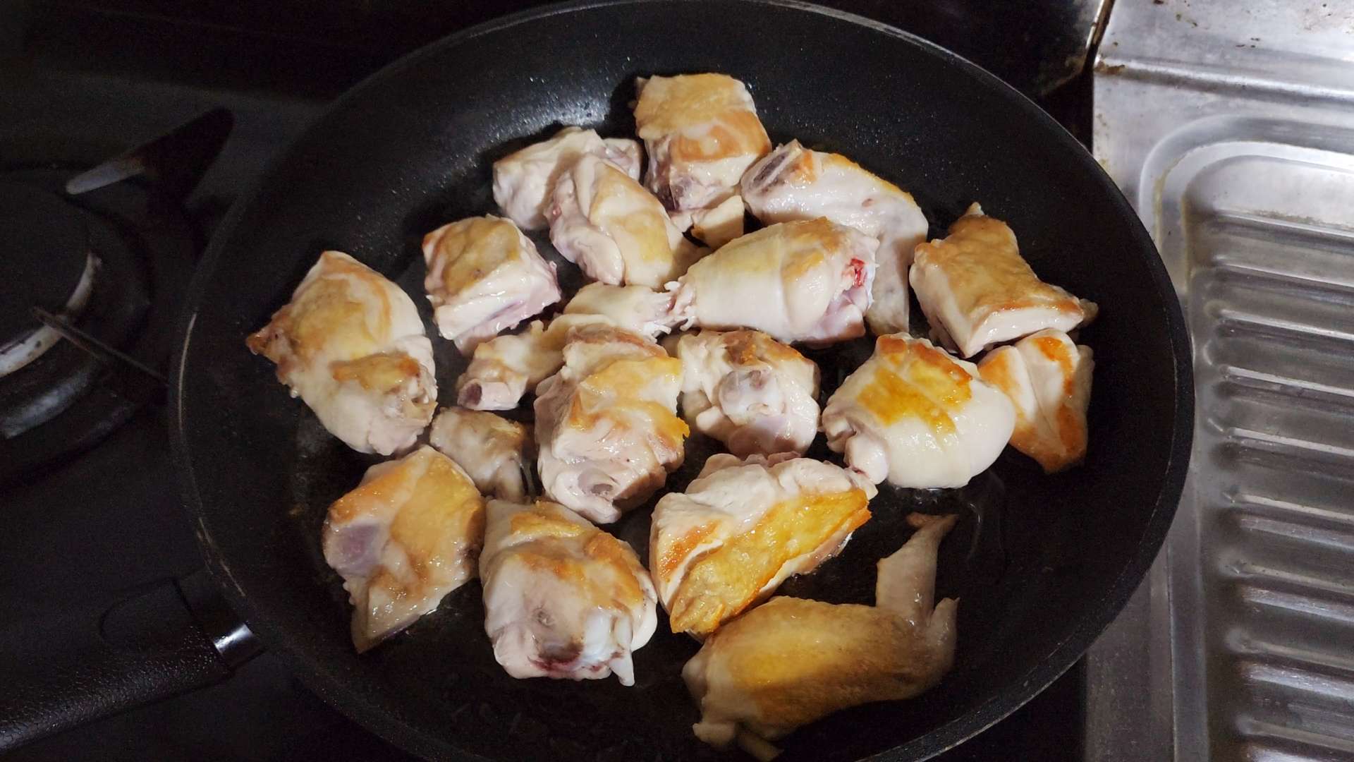 중불로 줄이고 닭을 뒤집어줍니다.