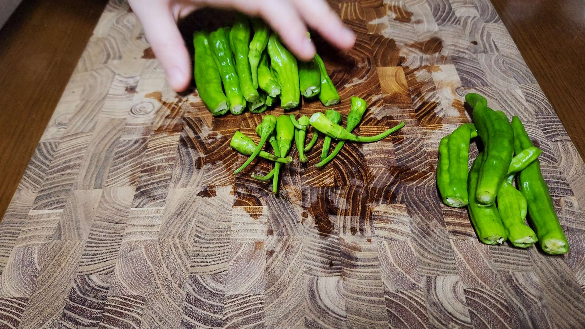 꽈리고추는 씻어서 꼭지 부분을 잘라줍니다.