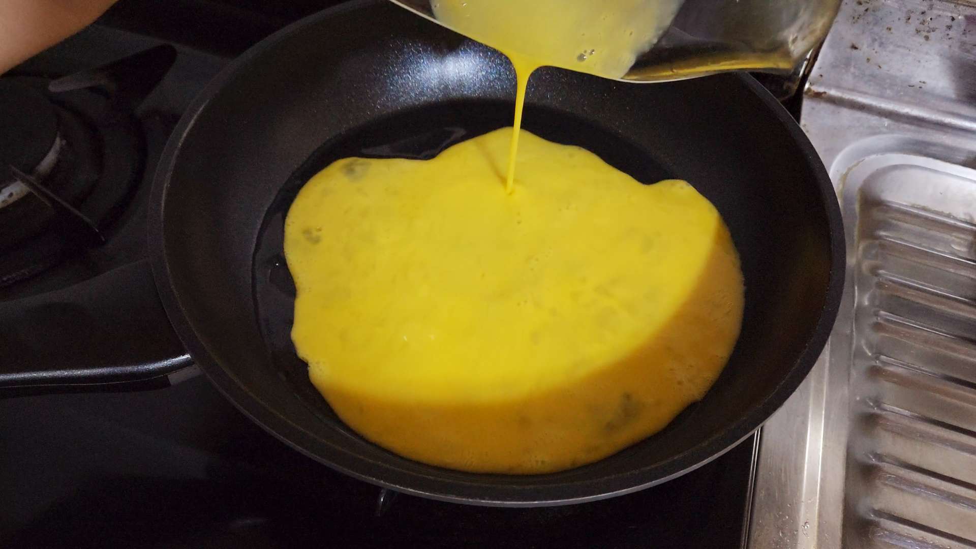 중불로 달군팬에 식용유를 두르고 계란을 넣고 가볍게 저어 스크램블을 만들고 그릇에 담아줍니다.