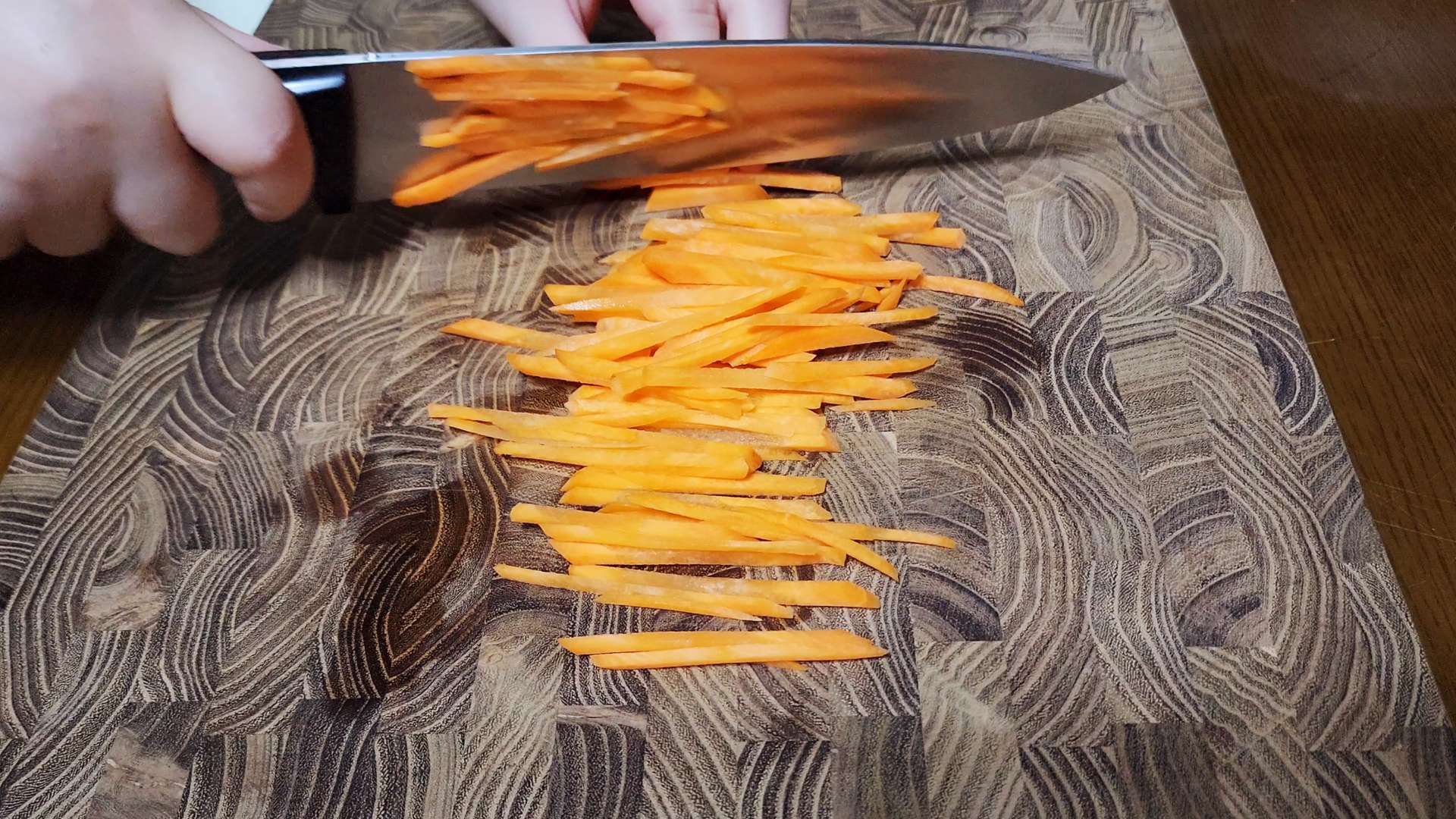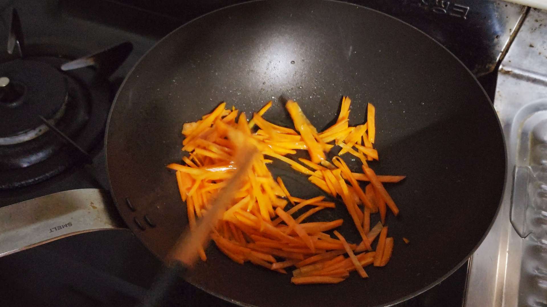 중불로 달군팬에 식용유, 당근, 소금 한꼬집을 넣고 볶아 그릇에 덜어둡니다.