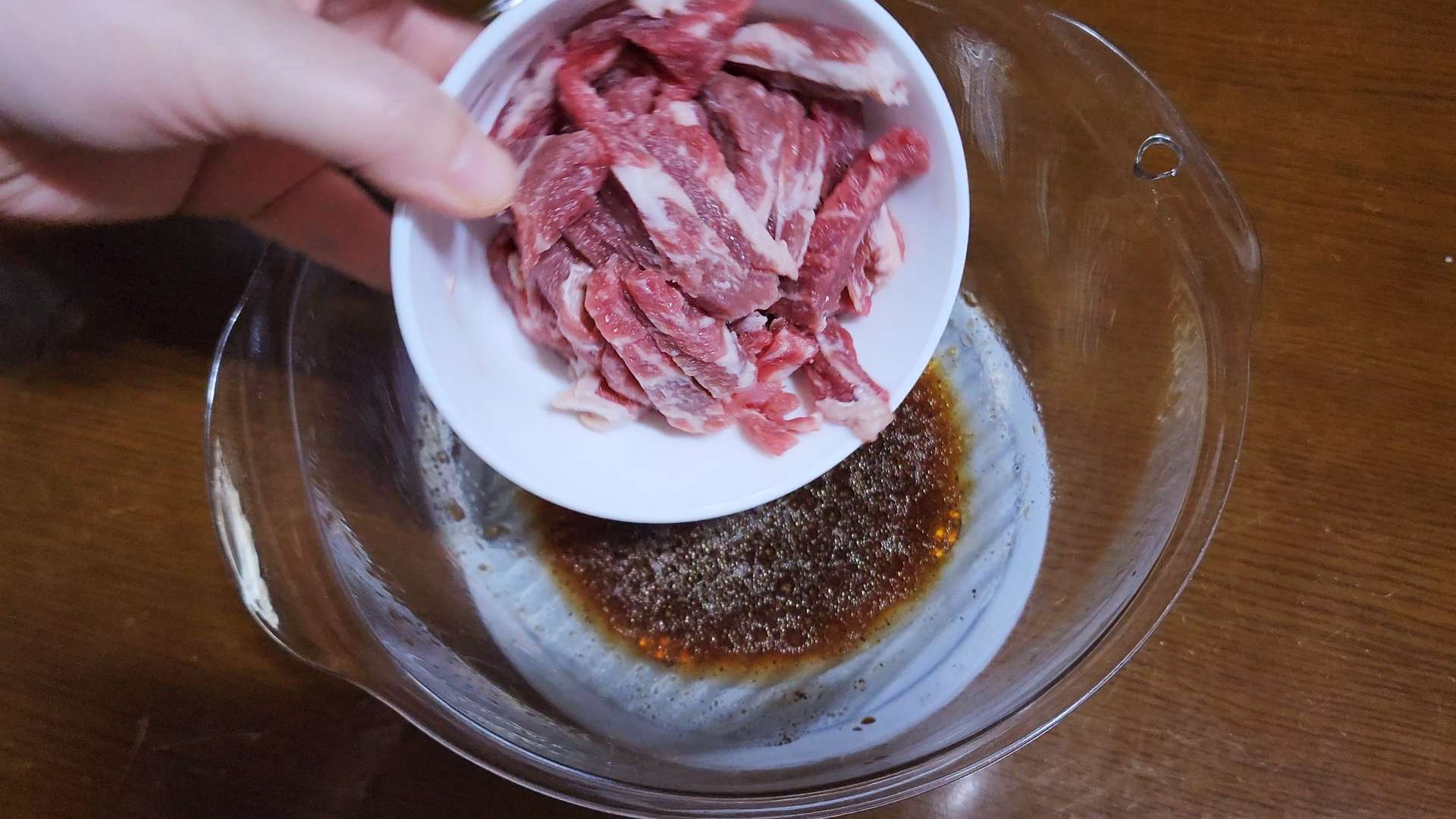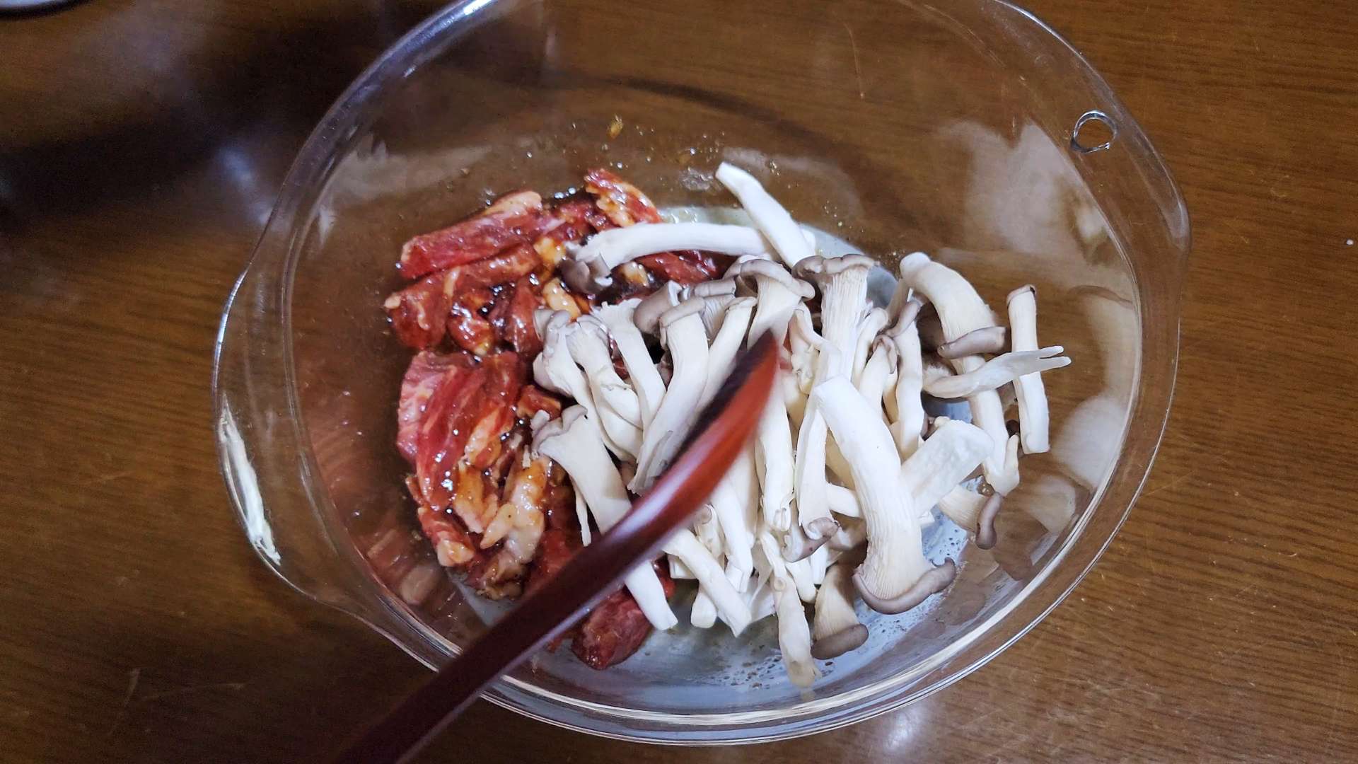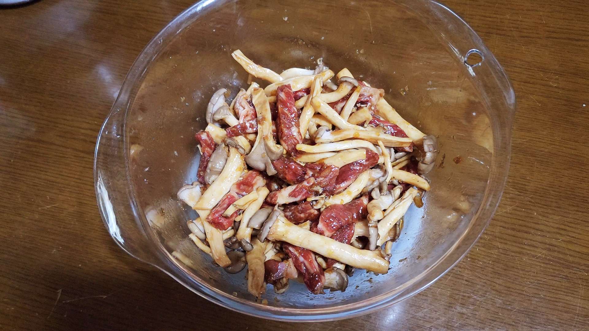 채썬 소고기, 느타리버섯을 넣고 버무려줍니다.