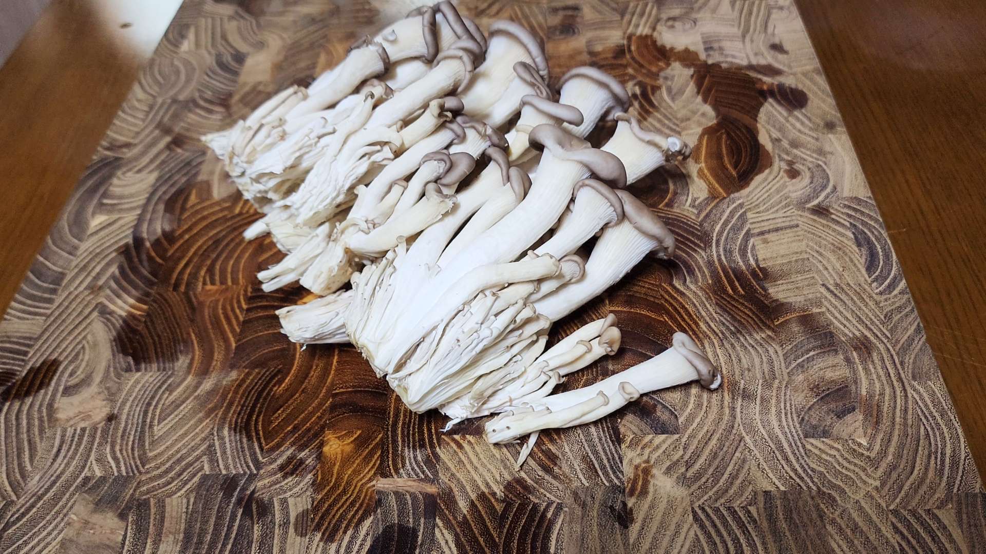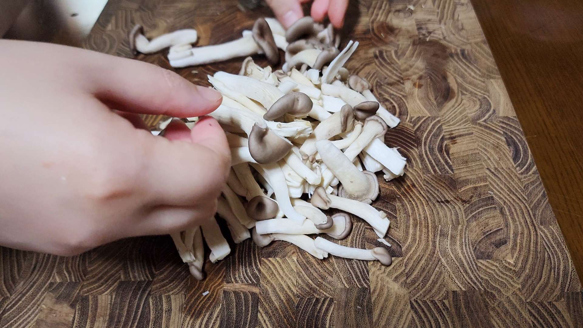 느타리버섯은 밑동은 자르고 찢어줍니다.