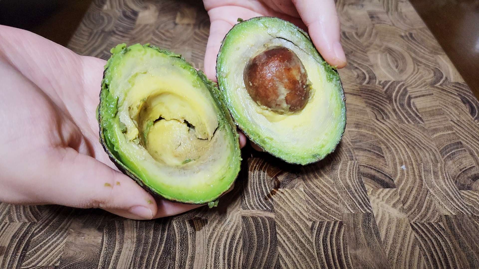 아보카도는 반으로 잘라 씨를 제거하고 속을 파서 껍질과 분리해 줍니다.