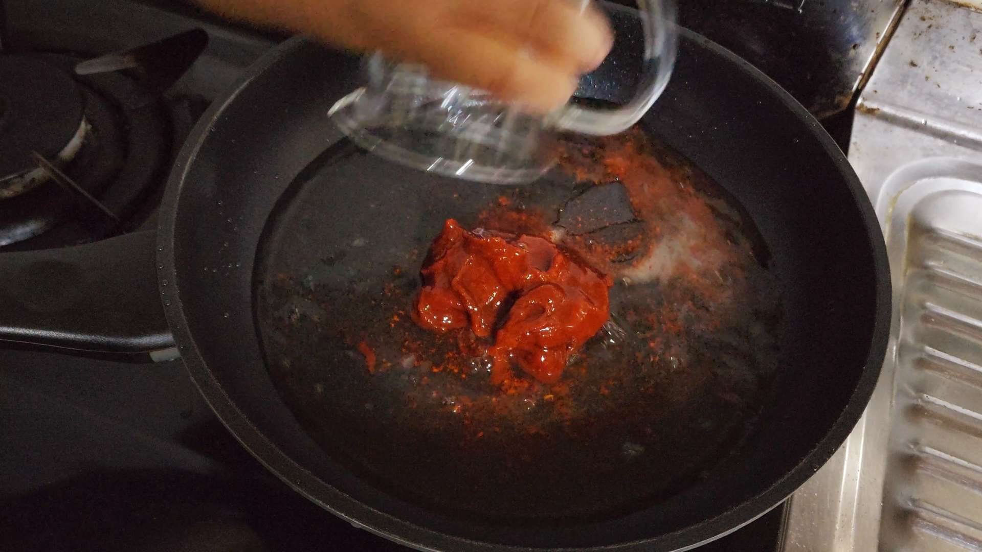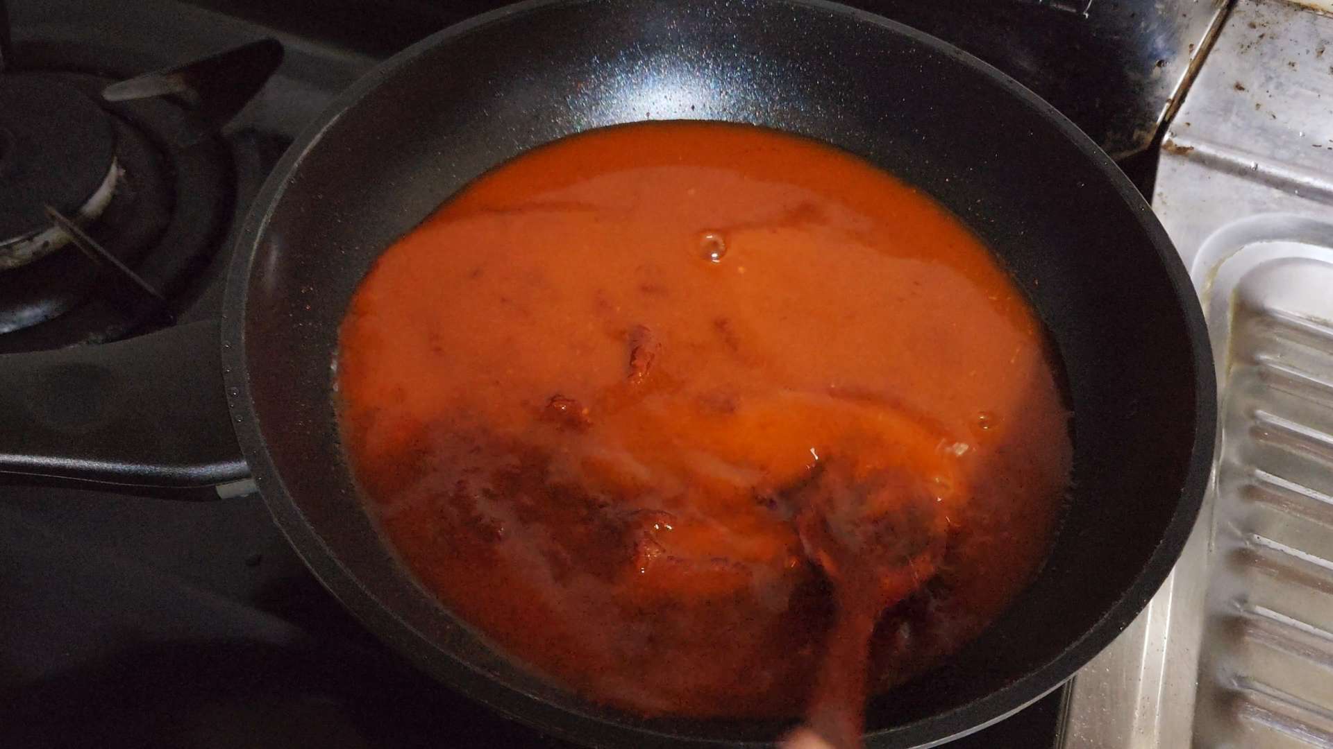 고춧가루 1T, 물엿 4T, 고추장 2와 1/2T, 물 1컵
