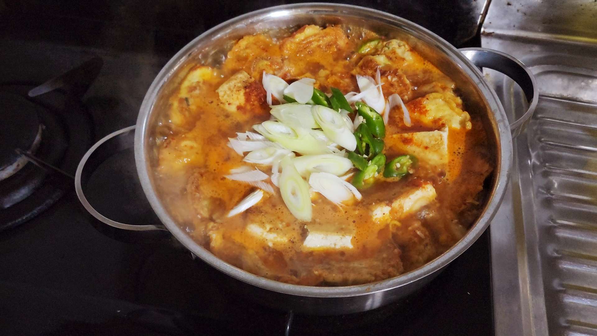 대파, 청양고추 한소끔 더 끓여줍니다.