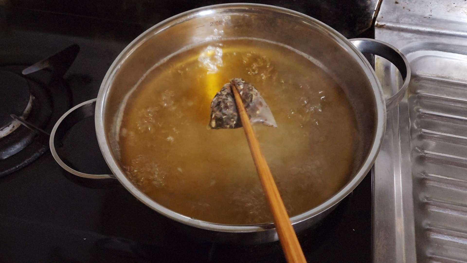 멸치다시팩을 건지고 무를 넣고 끓여줍니다.