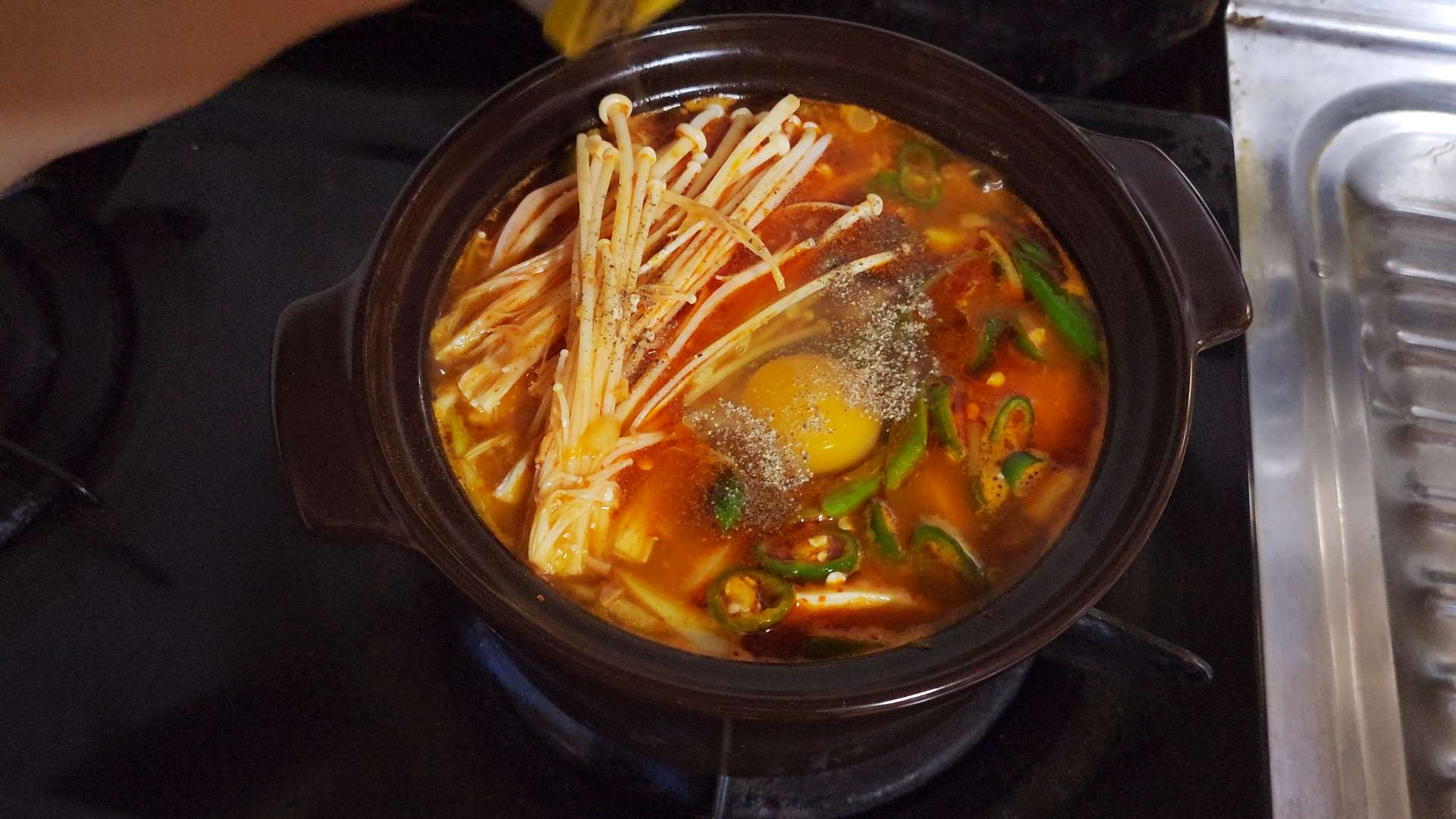청양고추, 대파, 팽이버섯을 넣어줍니다.