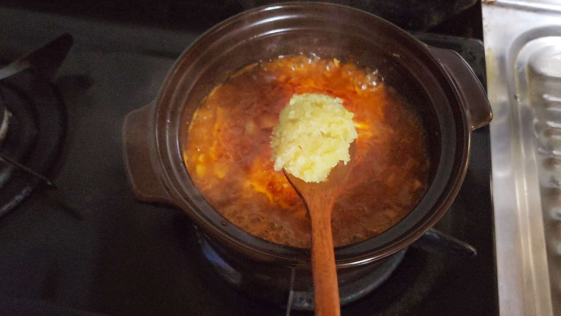 다진마늘 1T, 순두부를 넣고 한소끔 끓여줍니다.