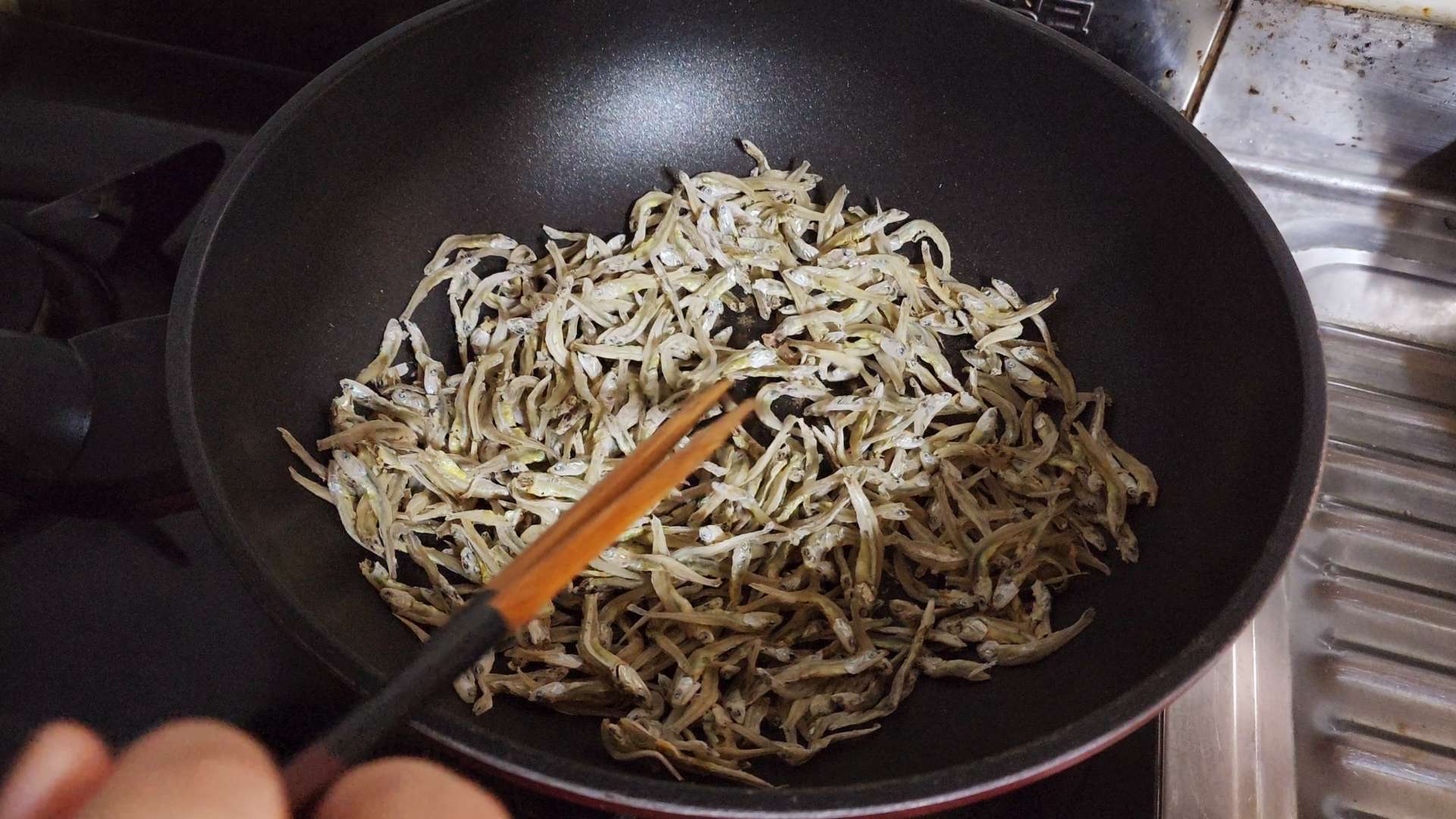 멸치는 마른팬에서 약불로 볶아 그릇에 덜어둡니다.