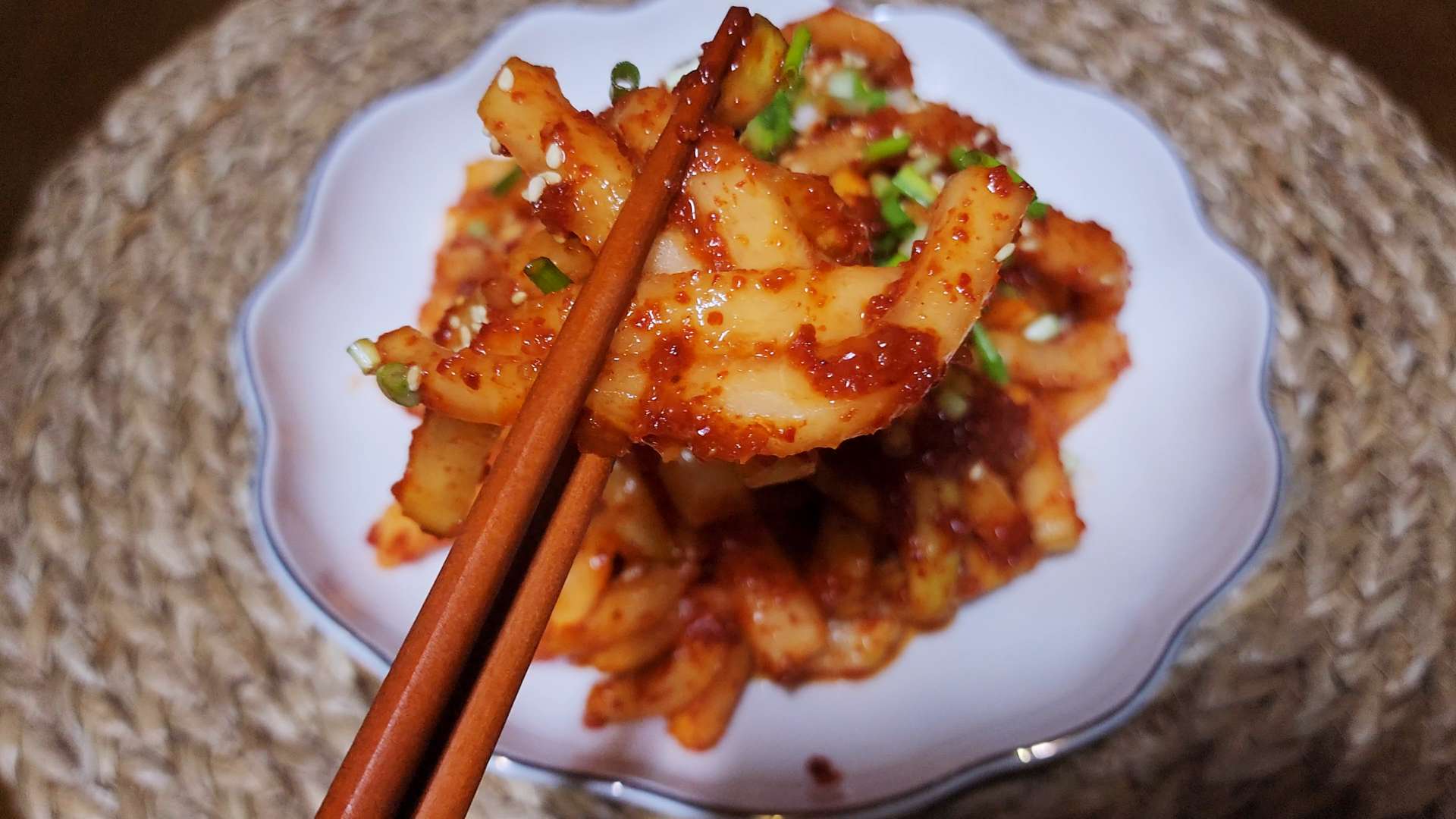 꼬들꼬들하고 매콤달콤해서 고기하고 잘 어울린답니다.