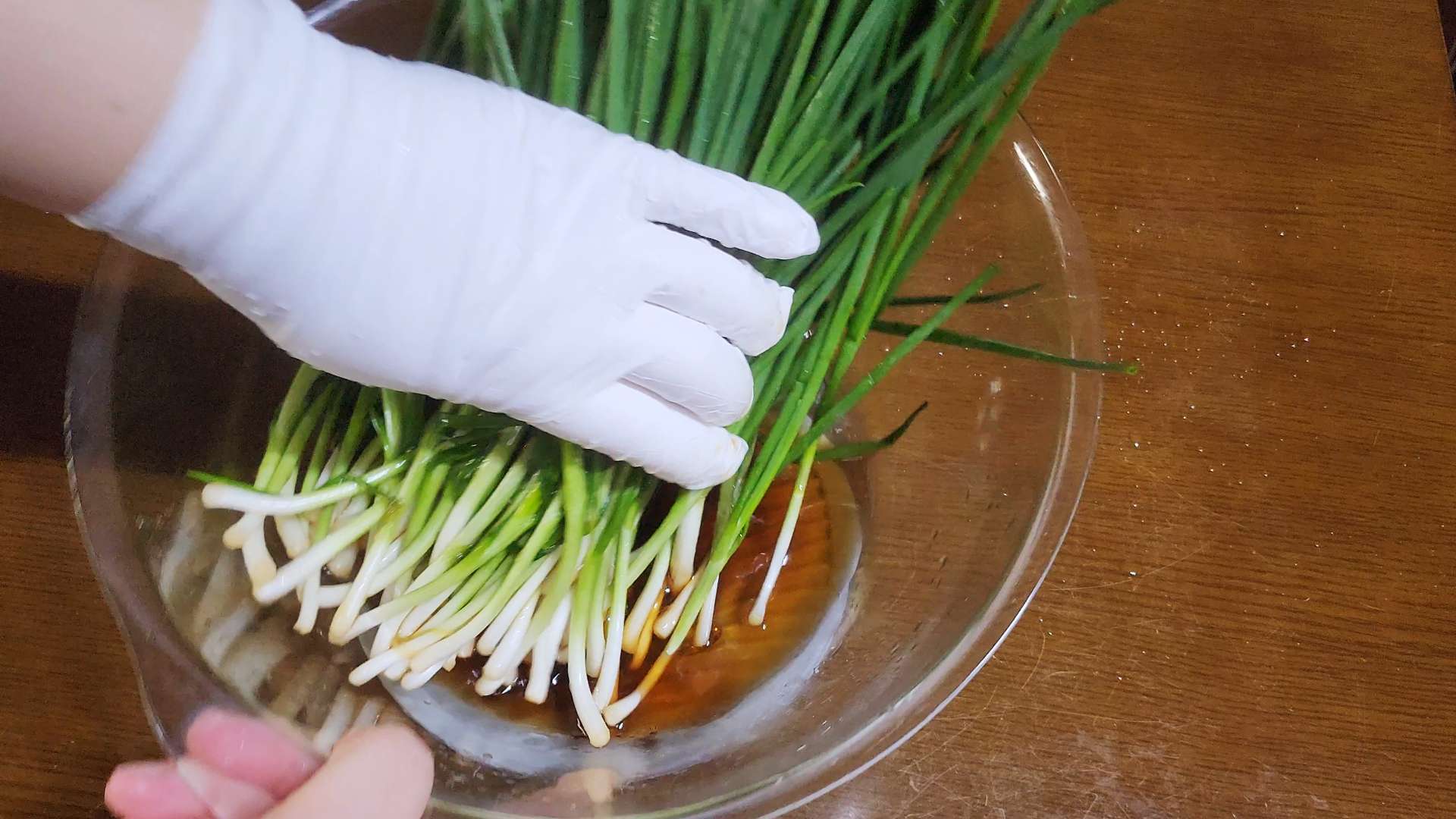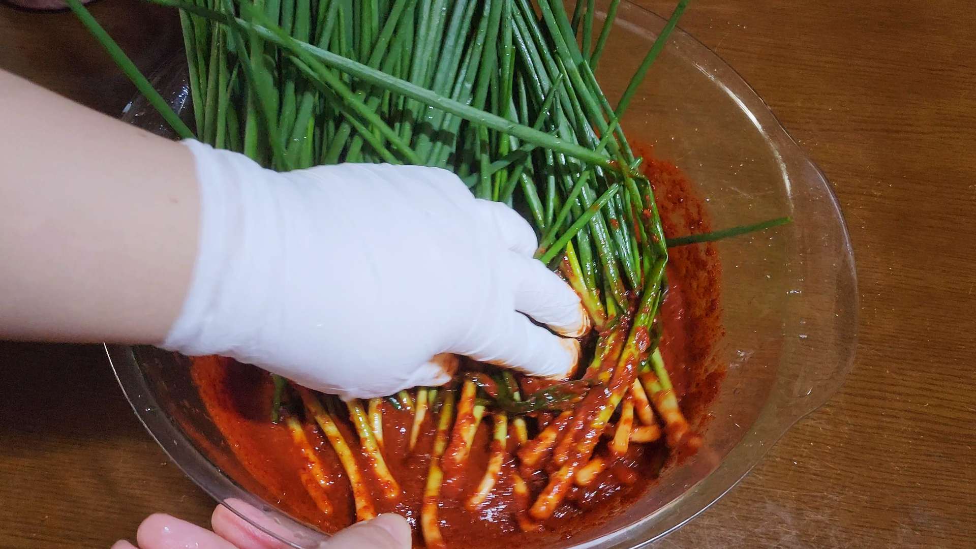 쪽파를 넣고 양념을 발라줍니다.