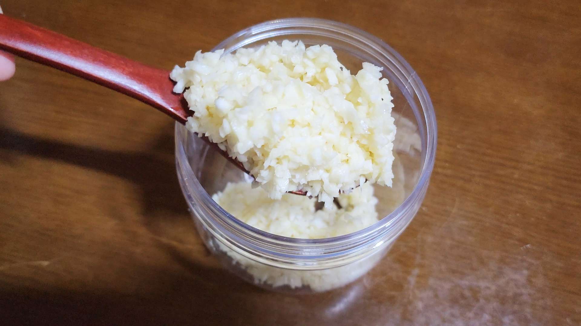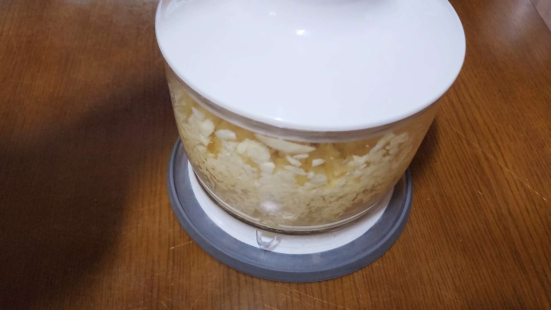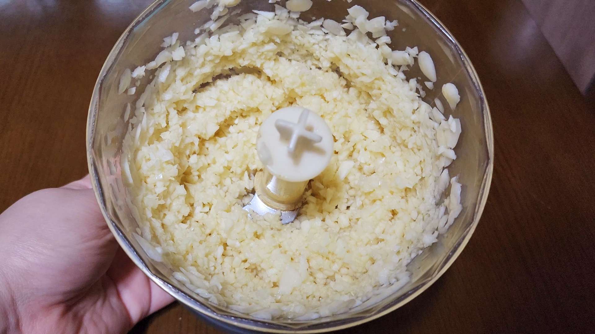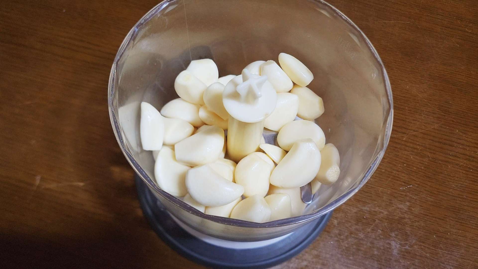 마늘을 다지기에 넣고 곱지 않게 다져줍니다.