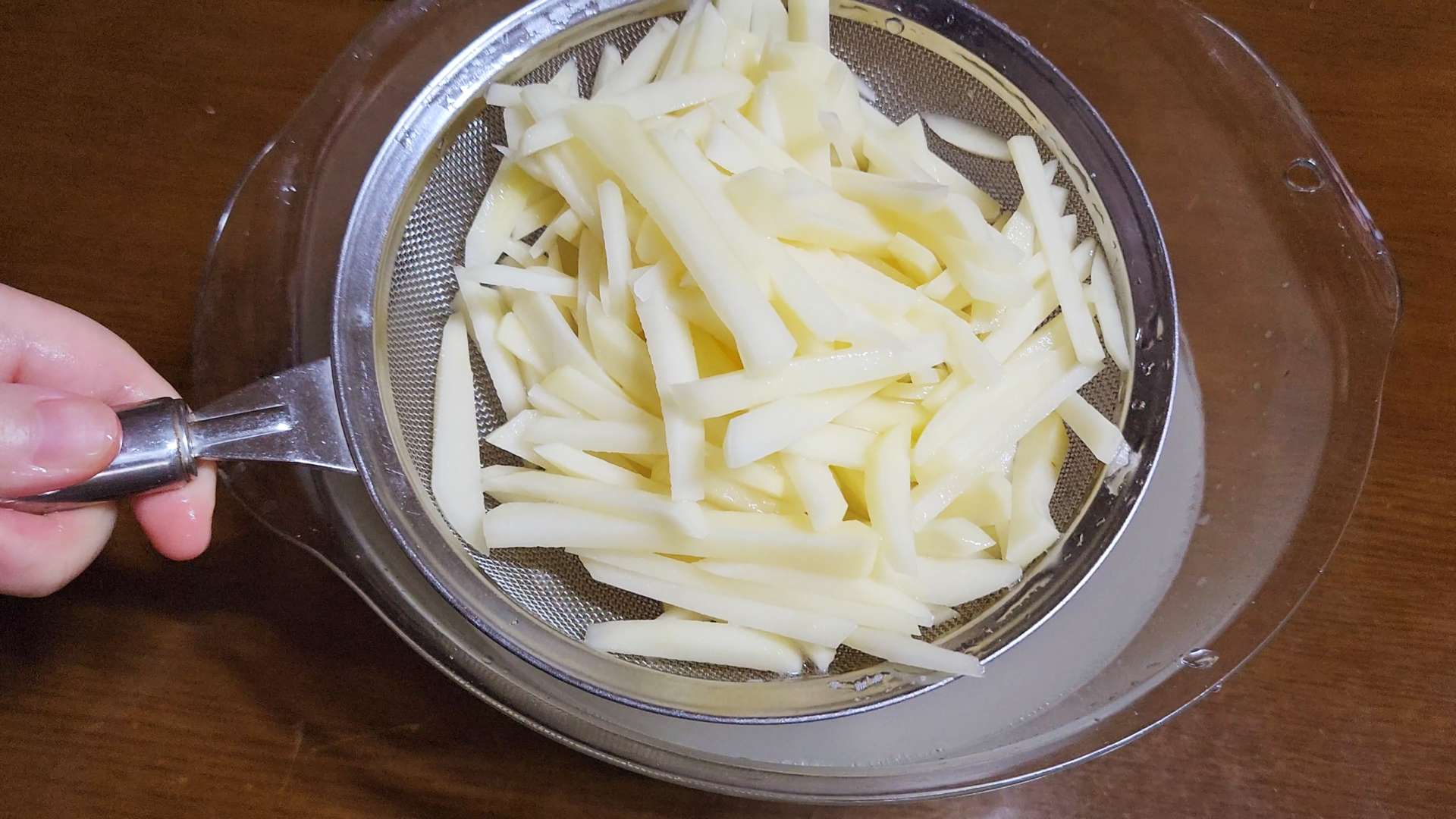 물에 채썬 감자를 넣고 한번 헹궈줍니다.