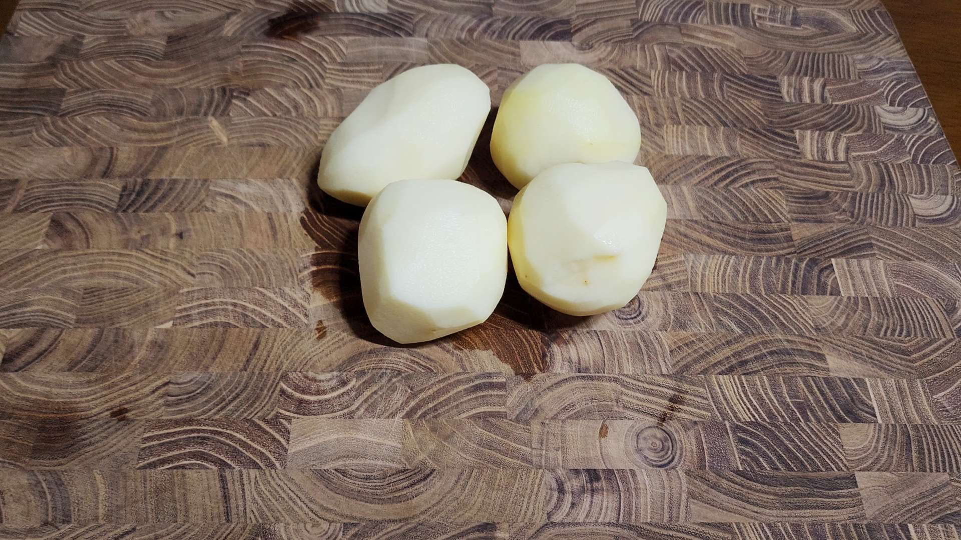 재료: 감자 작은 것 4개, 대파, 고추청 3T, 간장 3T, 참기름, 통깨, 식용유