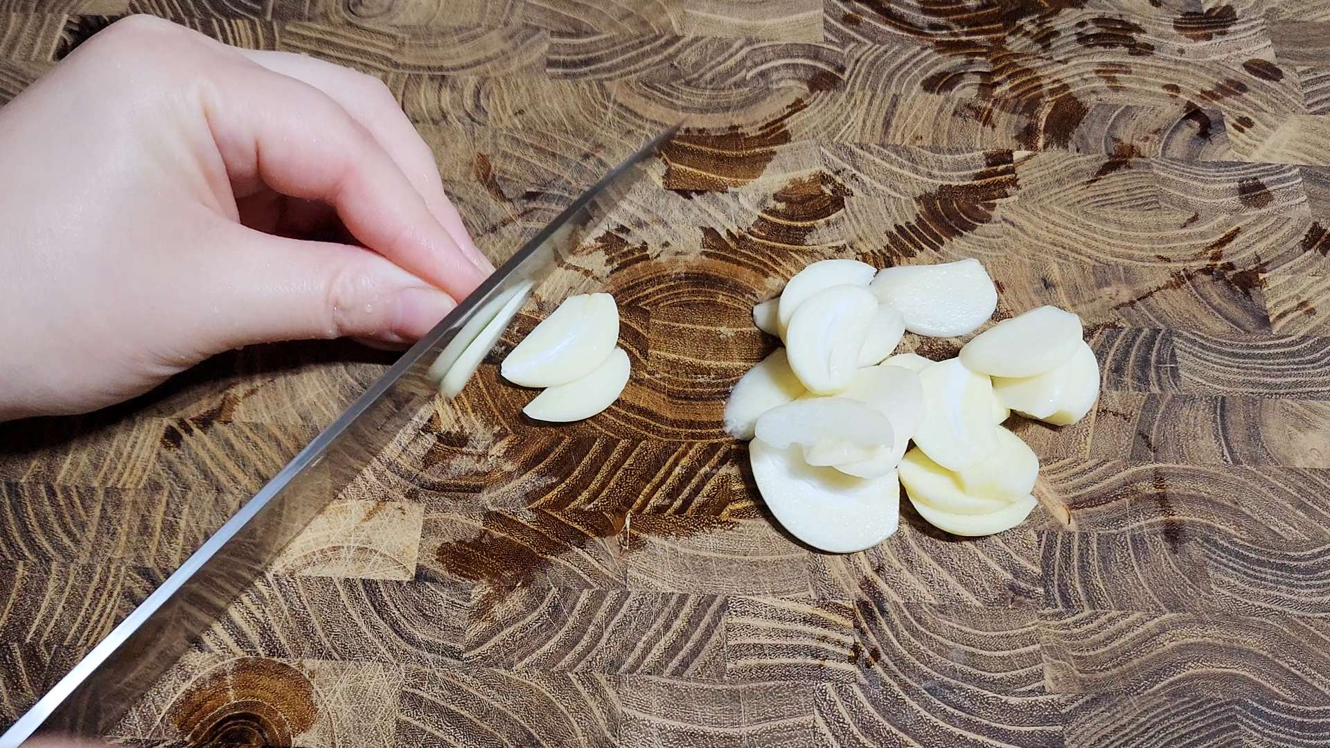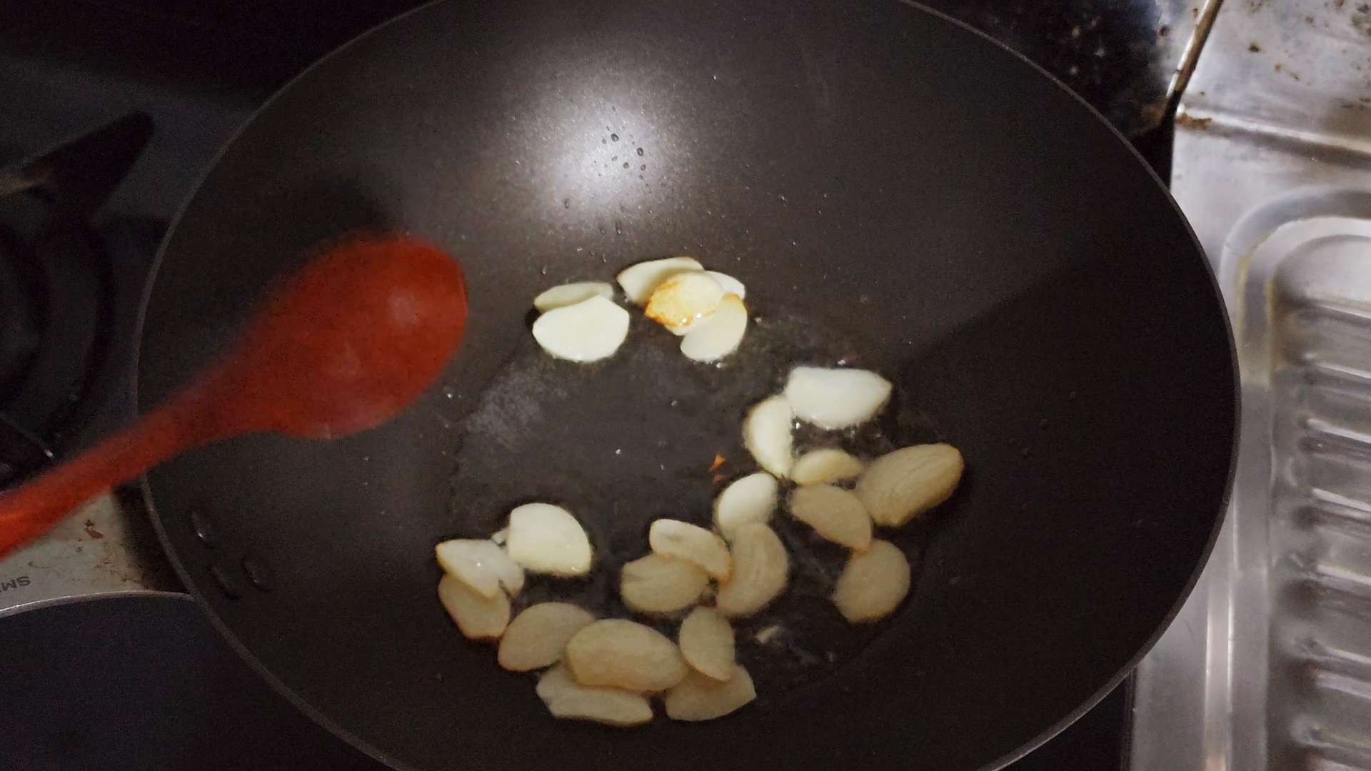 중불로 달군팬에 식용유를 두르고 마늘을 넣고 1분 정도 볶아줍니다.