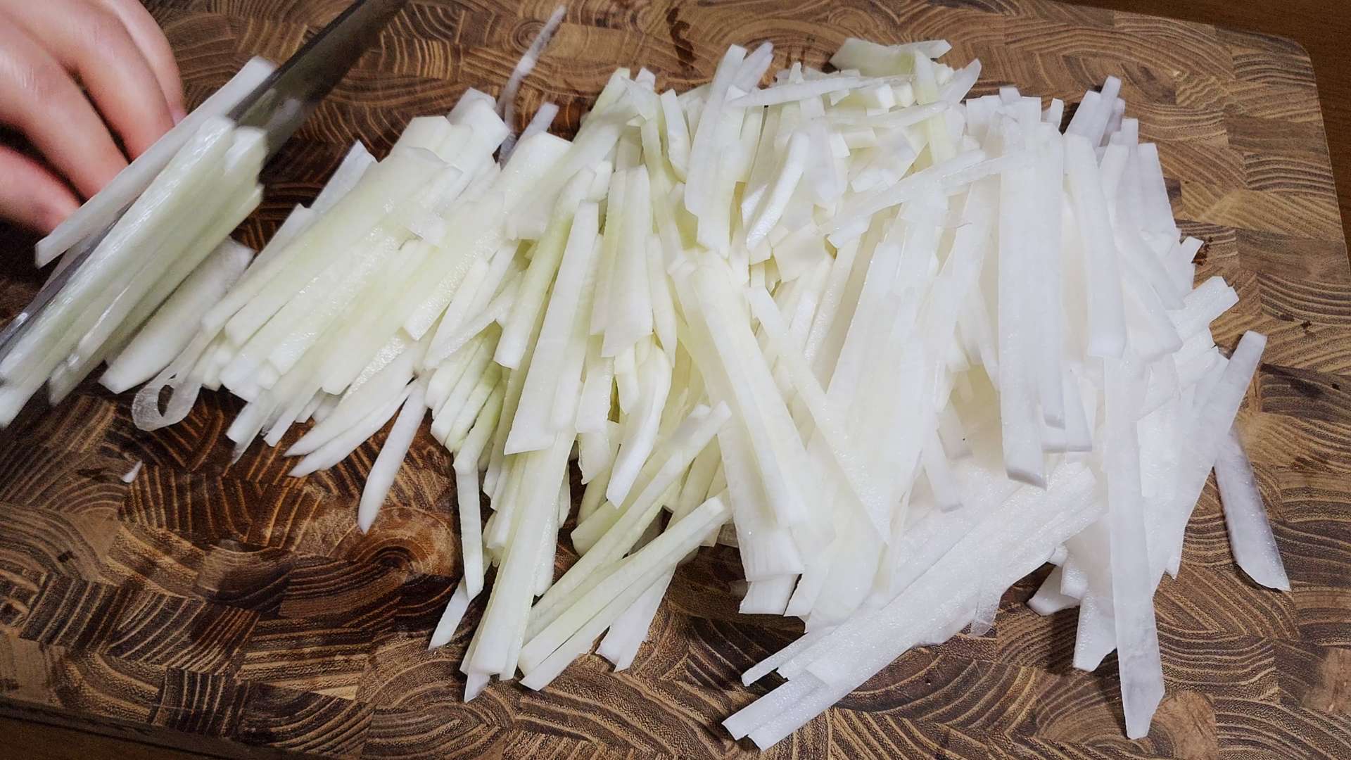 재료: 무 1/2개, 쪽파 2대, 식용유