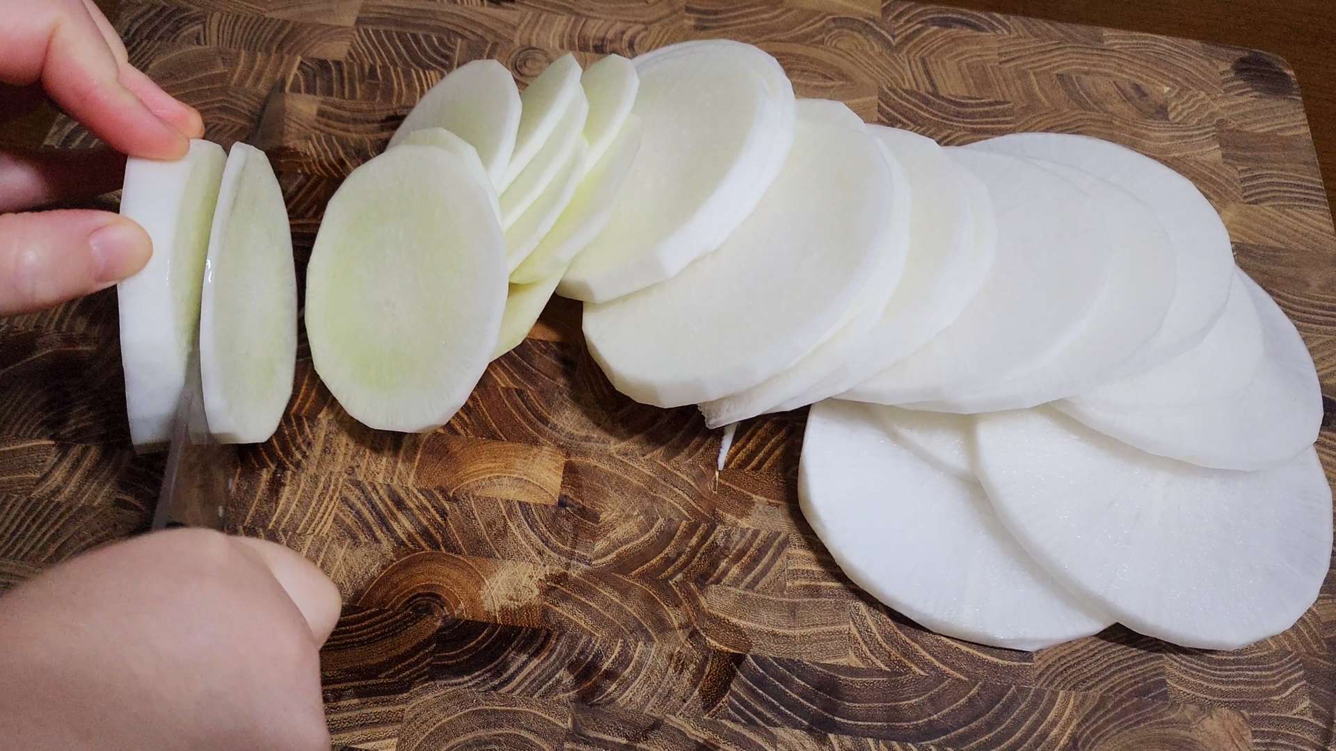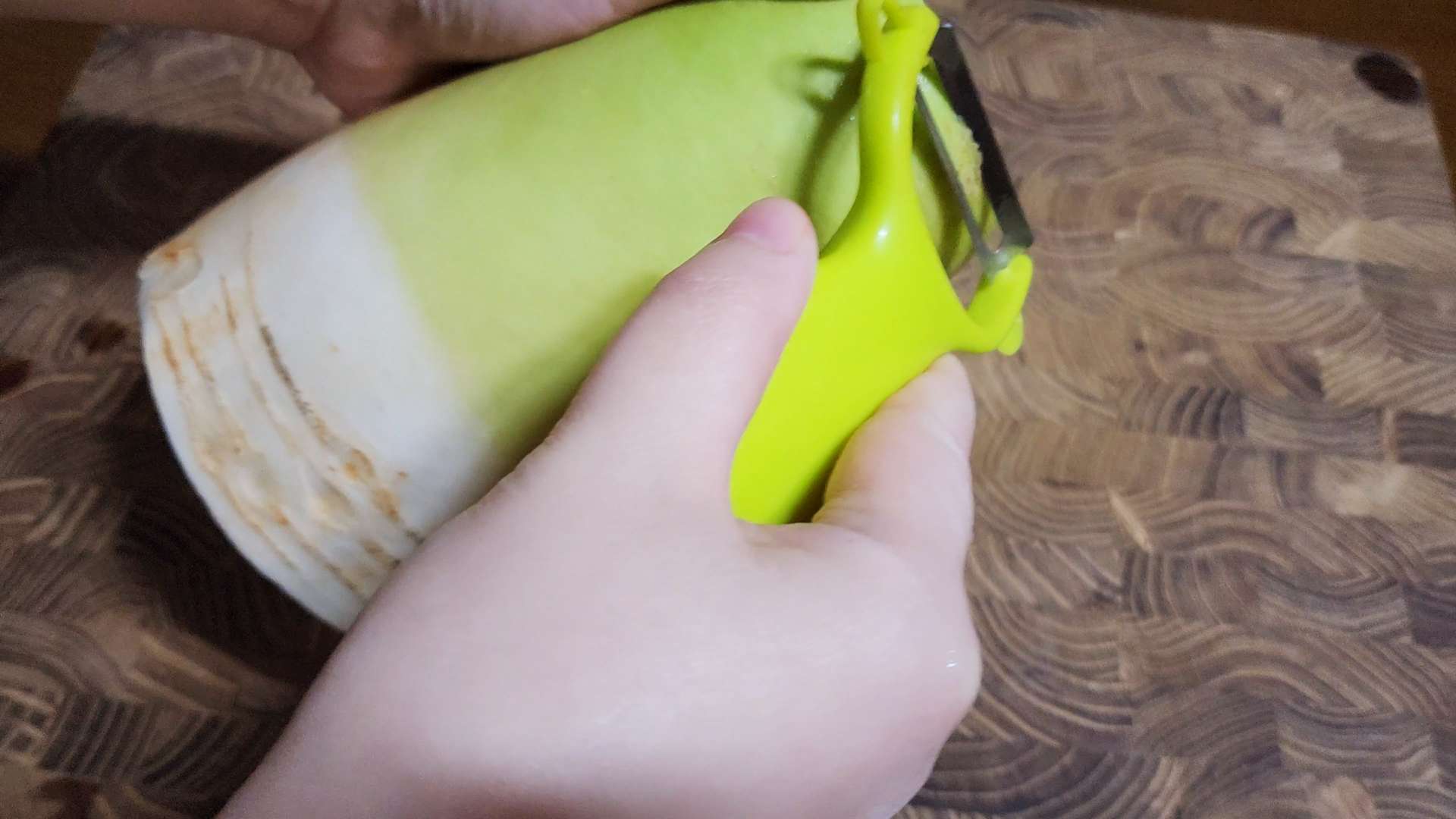 무는 깨끗하게 씻고 껍질을 벗겨줍니다.