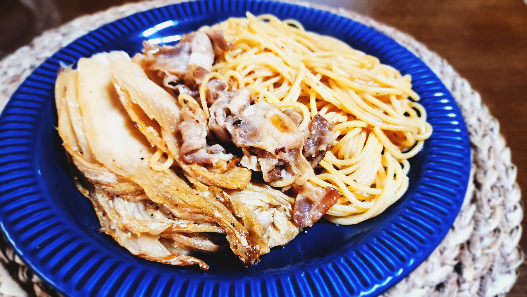 고소한 삼겹살과 아삭한 묵은지에 파스타를 같이 먹으면 맛있답니다.