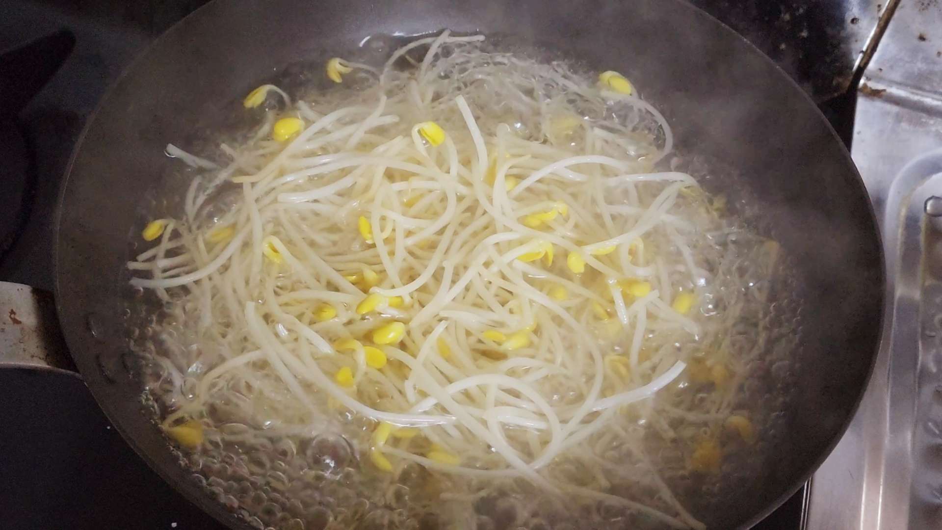 끓는물에 소금 0.2T, 콩나물을 넣어줍니다.