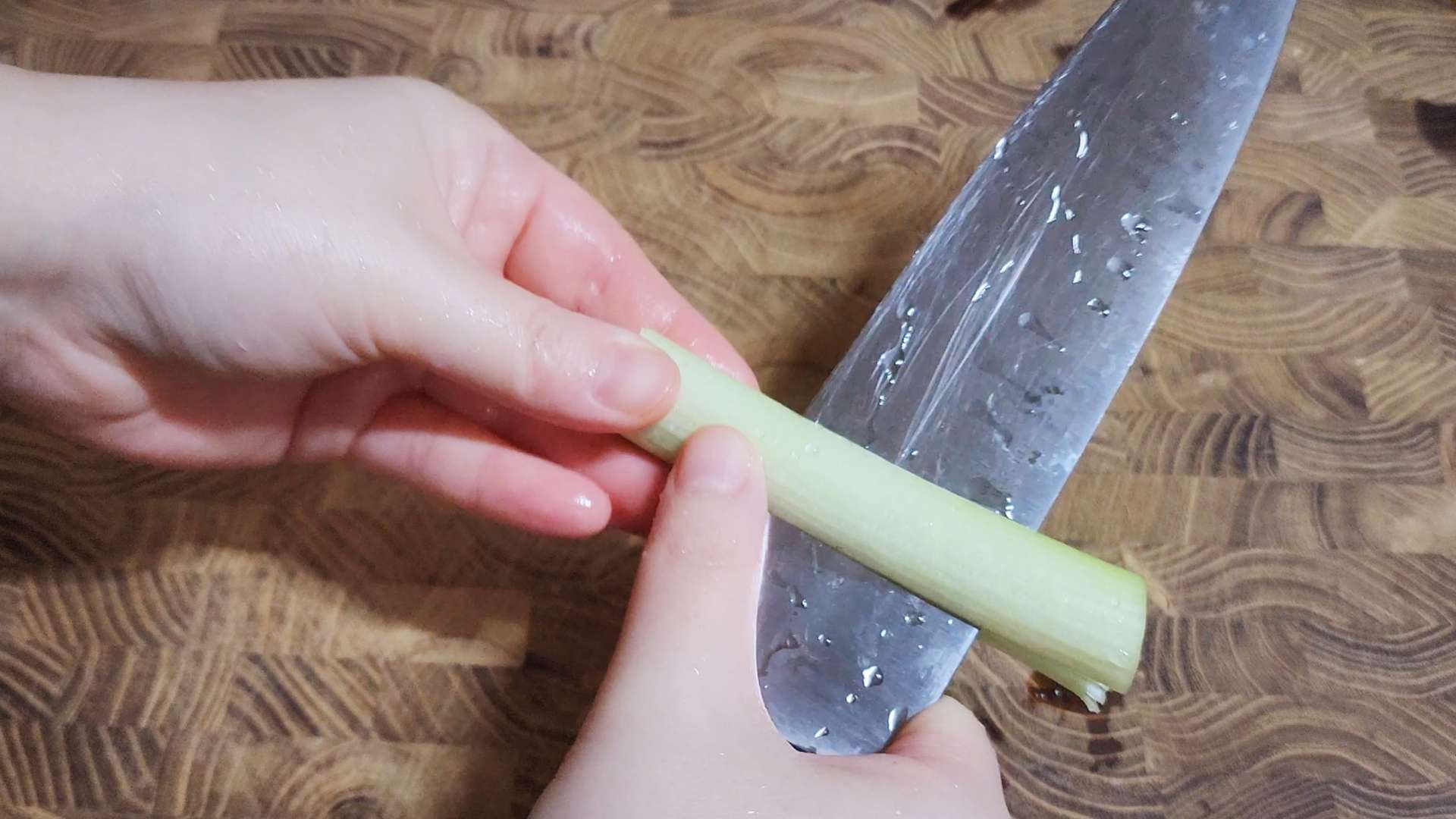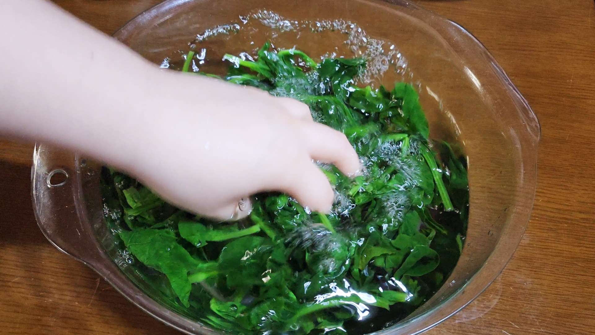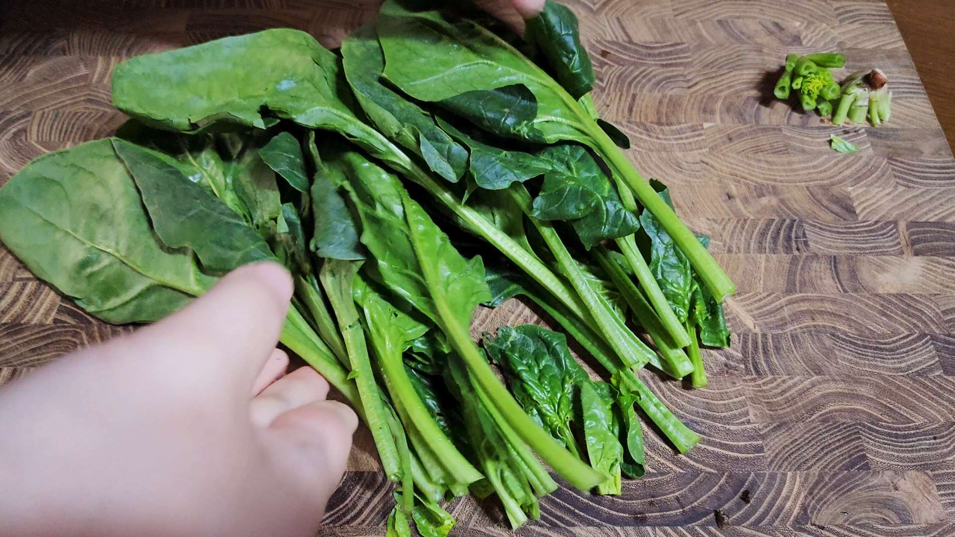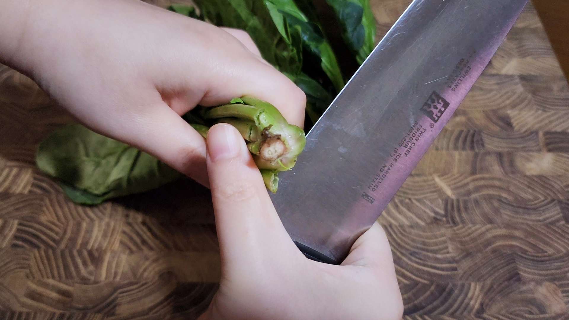 시금치는 뿌리를 자르고 다듬어 줍니다.