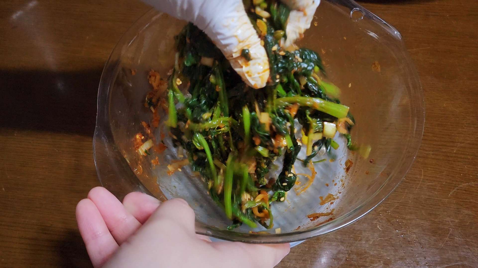 찬물에 2번 정도 씻은 뒤 물기를 살짝만 짜줍니다.