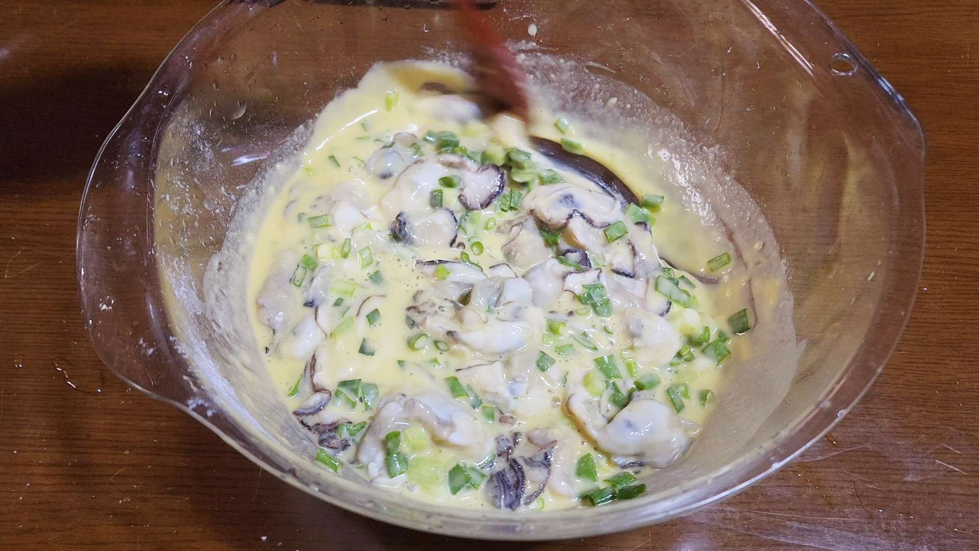쪽파, 굴을 넣고 섞어줍니다.