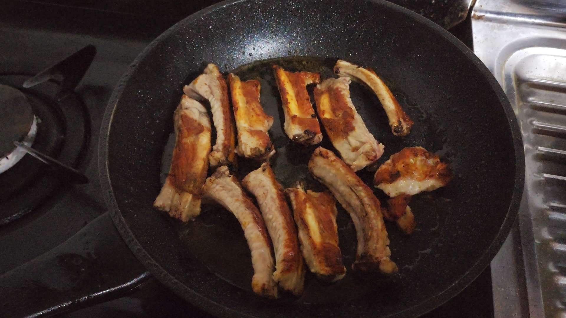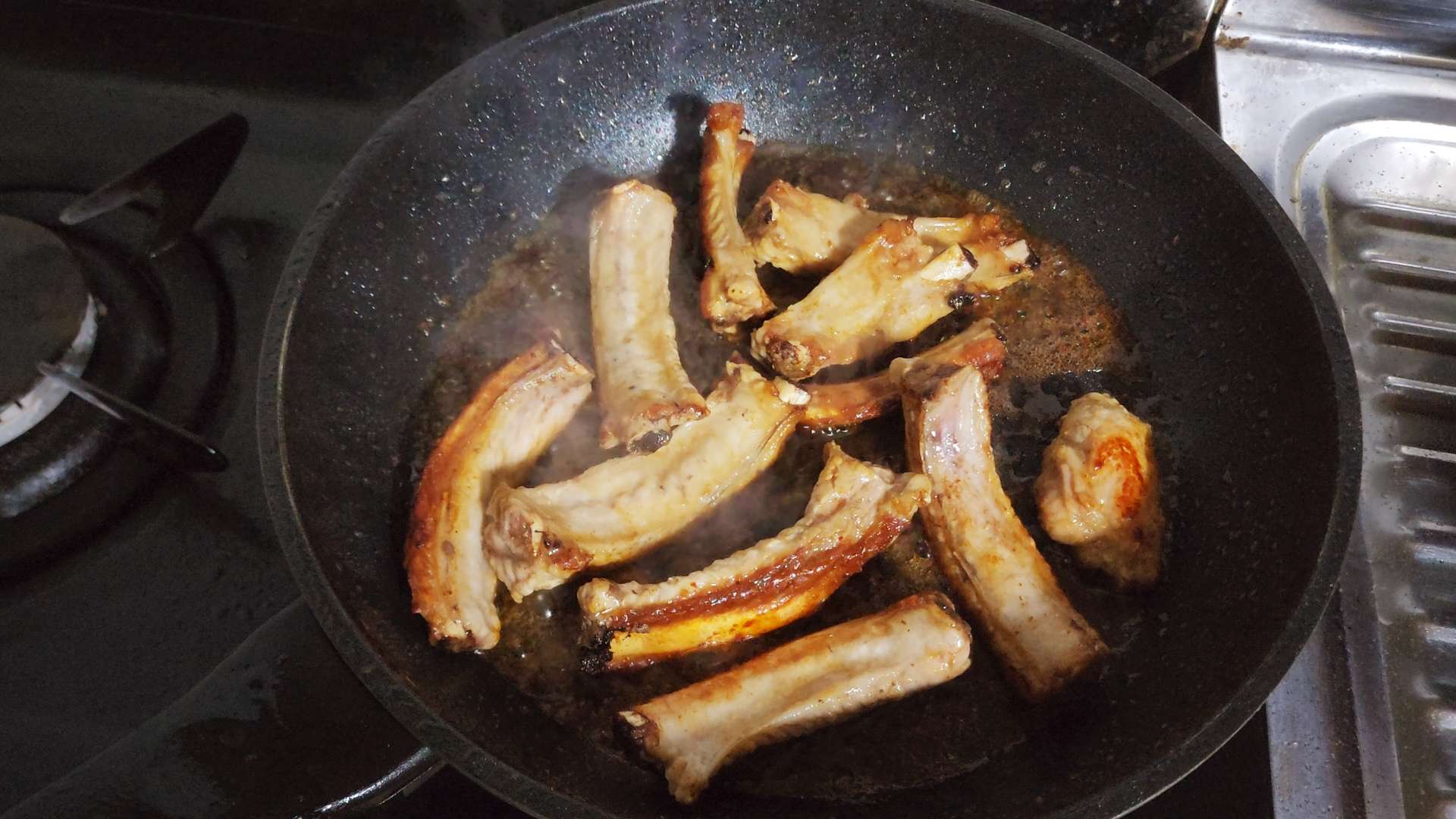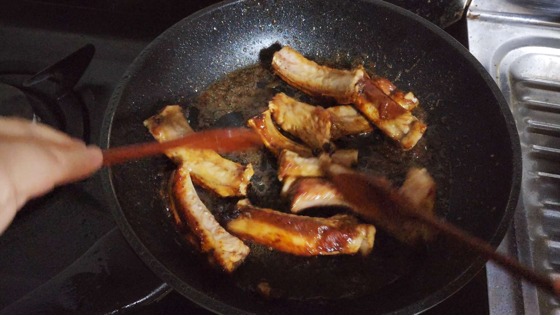 *기름이 끓기 시작하면 눌어붙은 소스를 등갈비에