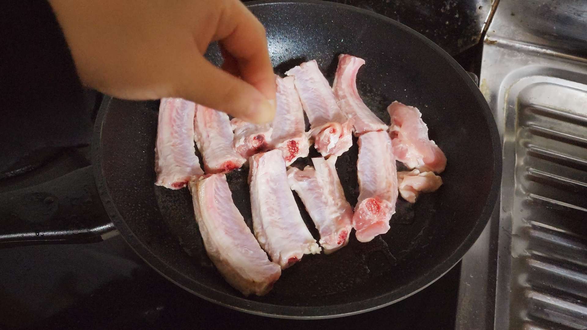 등갈비를 올리고 소금 한꼬집을 뿌려줍니다.
