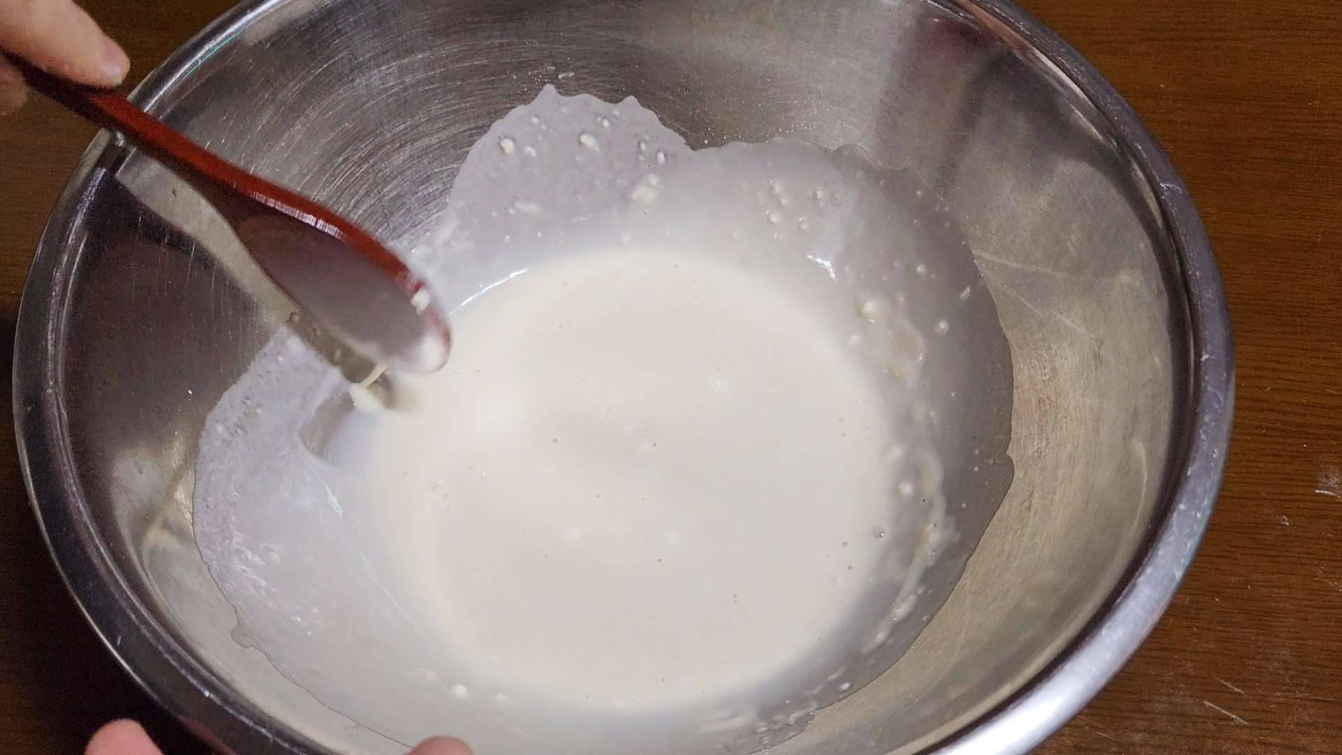 밀가루 100ml, 물 100ml, 간장 0.3T, 참기름 0.3T, 소금 2꼬집을 넣고 섞어 줍니다.