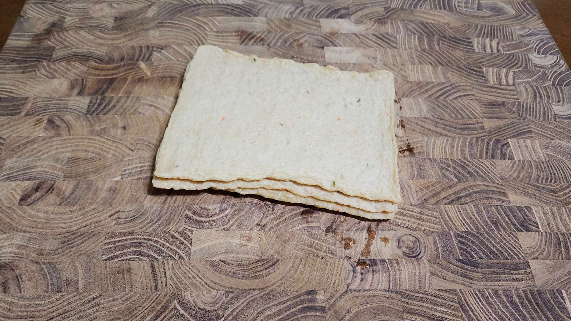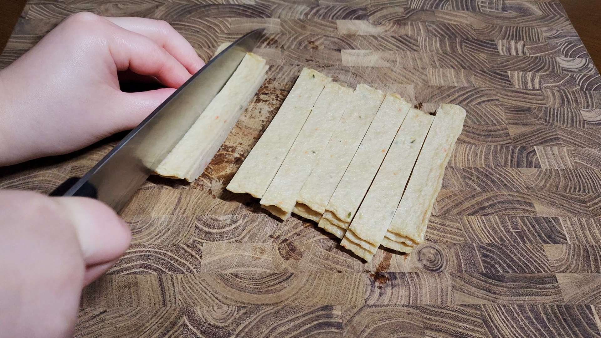 사각어묵 4장은 먹기 좋은 크기로 채썰어 줍니다.
