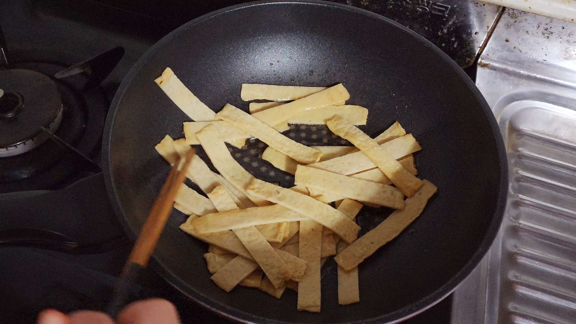 중불로 달군팬에 식용유, 어묵을 넣고 센불에서 1분간 볶아줍니다.