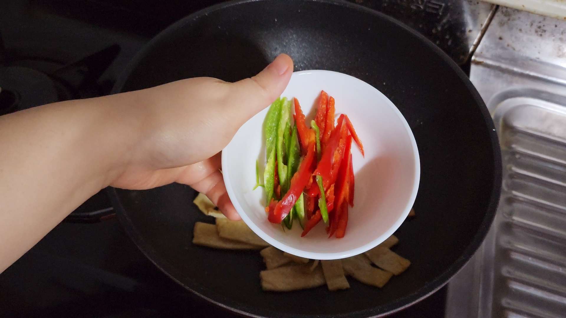 청양고추, 홍고추를 넣고 볶아줍니다.