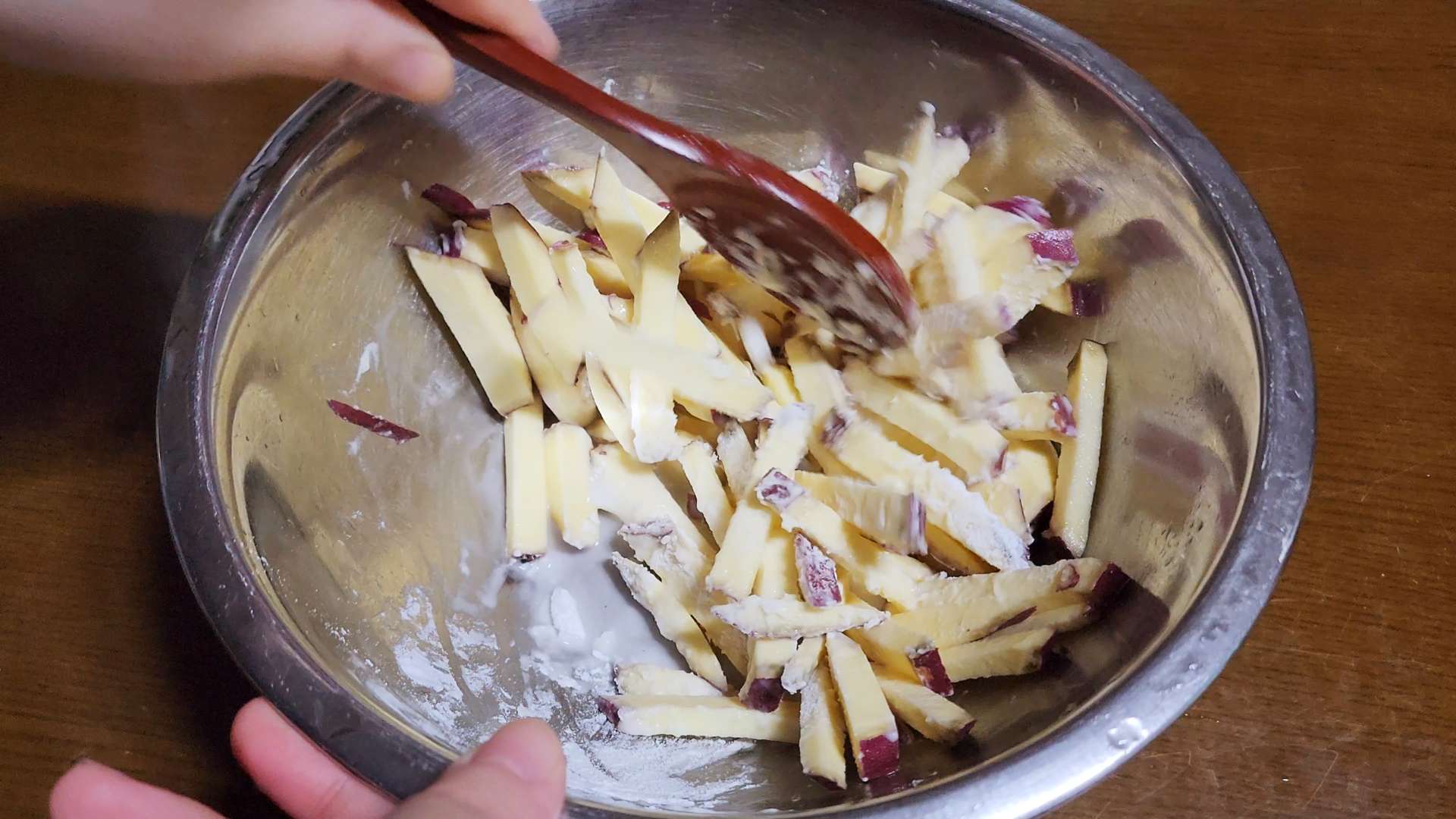 고구마, 전분 1T, 부침가루 1T, 물 1T를 넣고