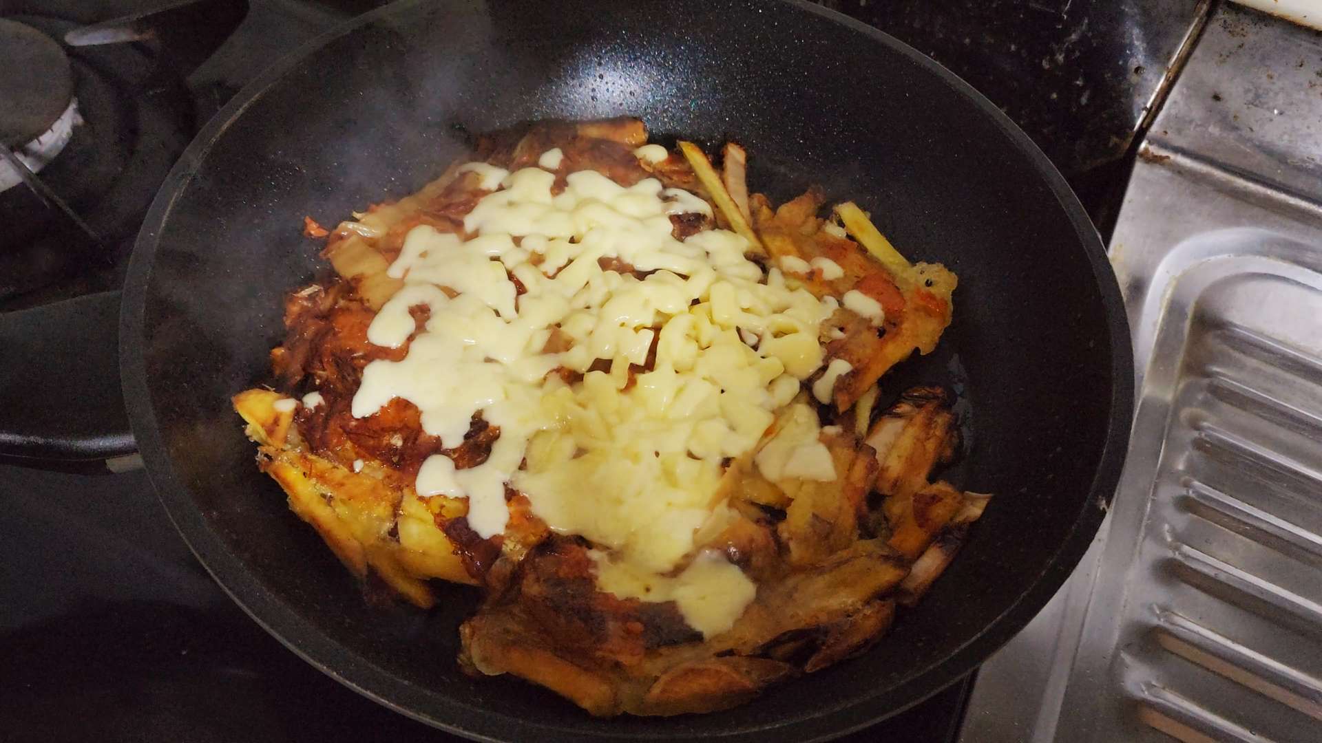 피자치즈를 올려 뚜껑을 덮고 녹여줍니다.
