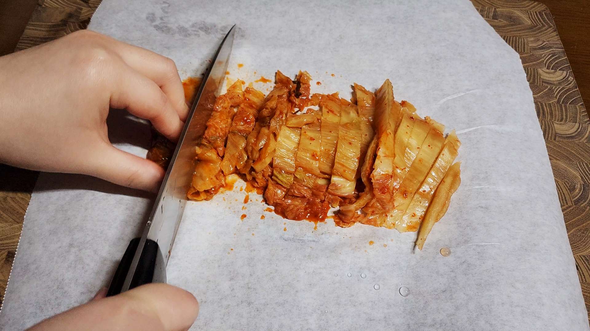 묵은지는 채 썰어줍니다.