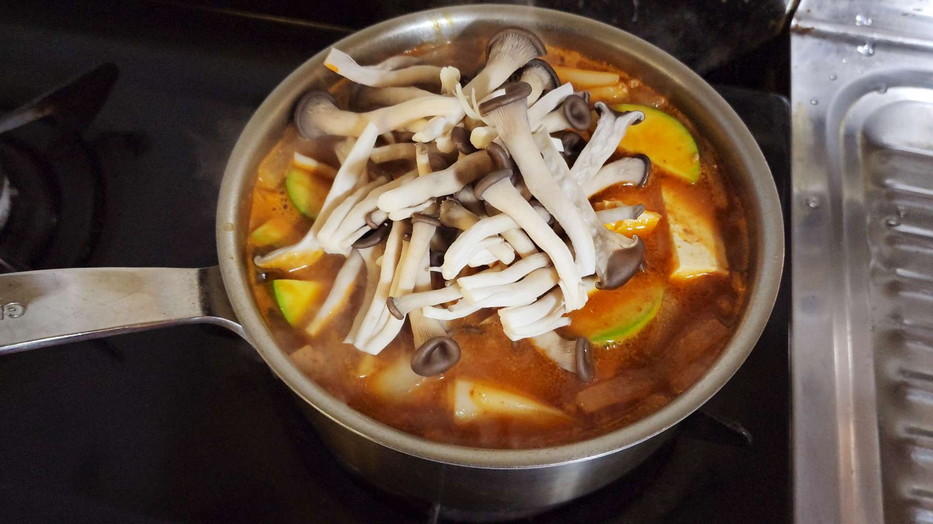 애호박, 두부, 느타리버섯, 다진마늘 1T를 넣고 끓여줍니다.