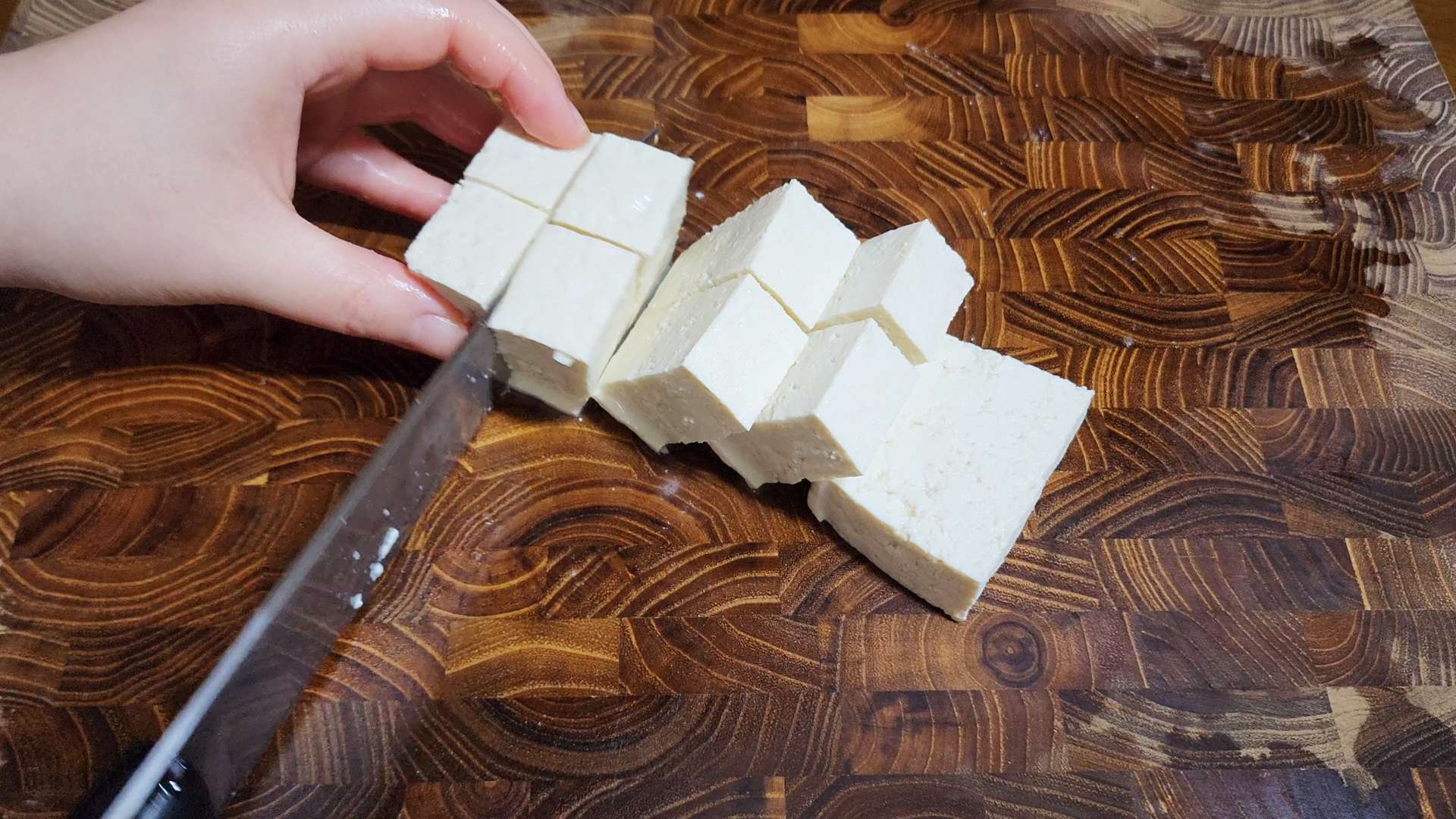 두부는 먹기 좋은 크기로 잘라줍니다.