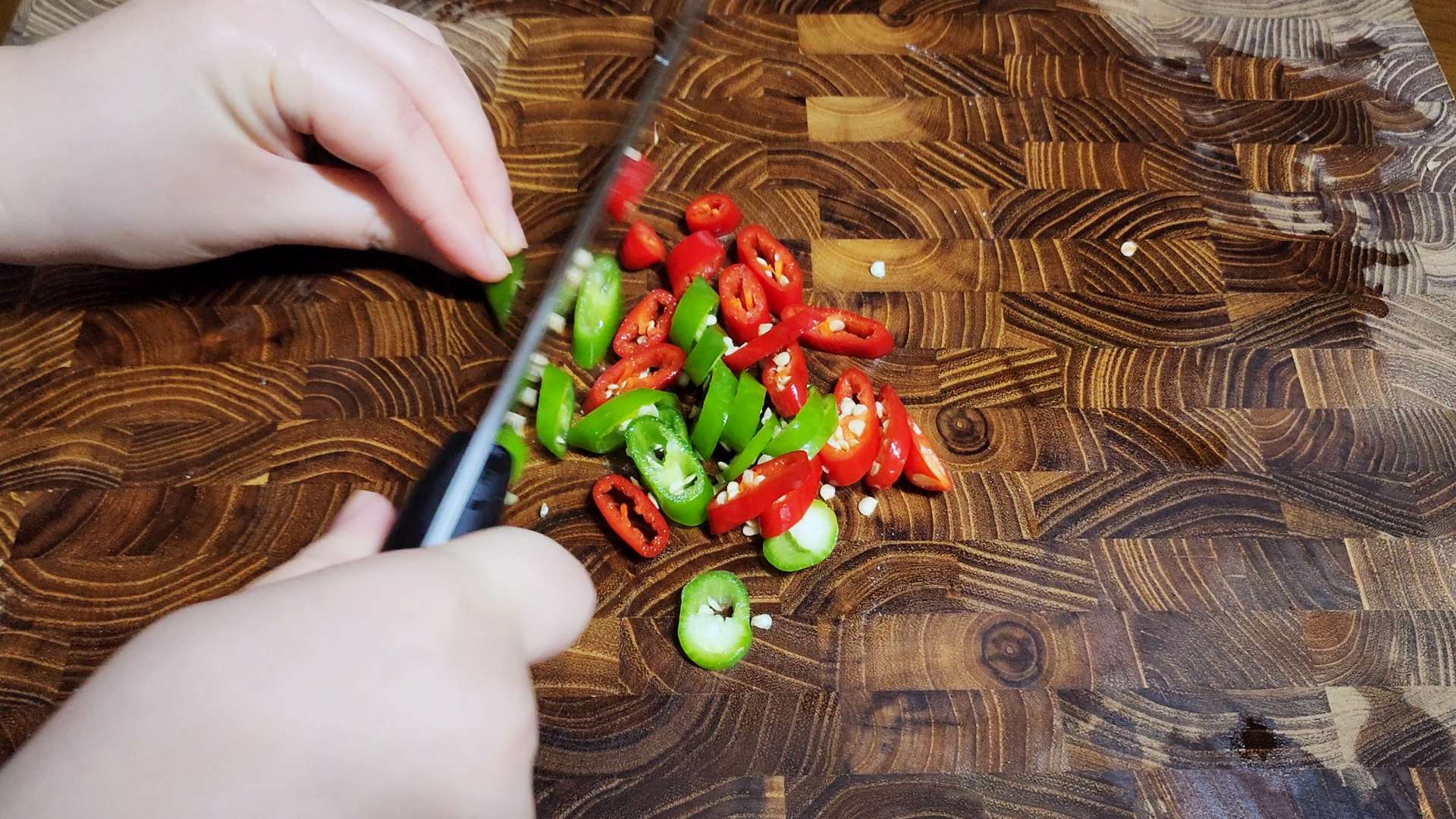 청양고추, 홍고추는 어슷 썰어줍니다.