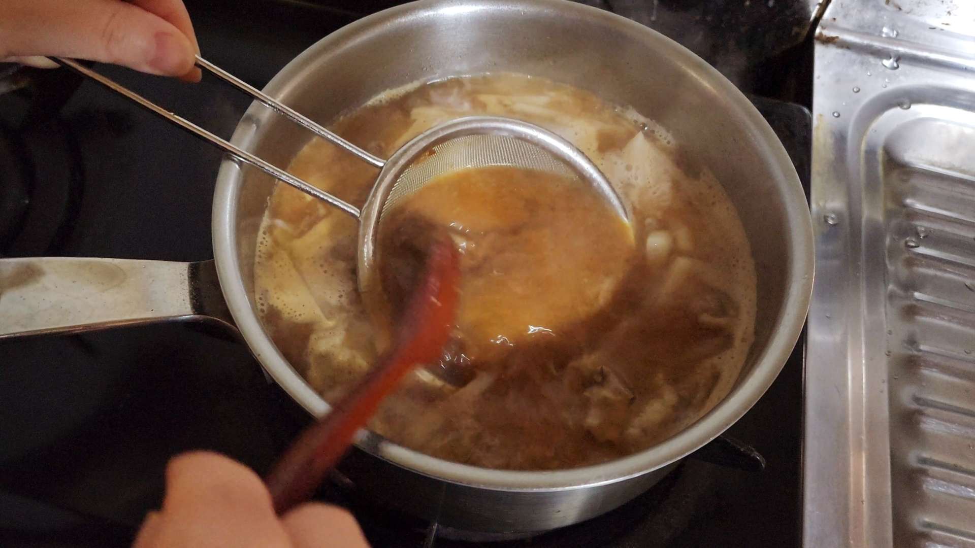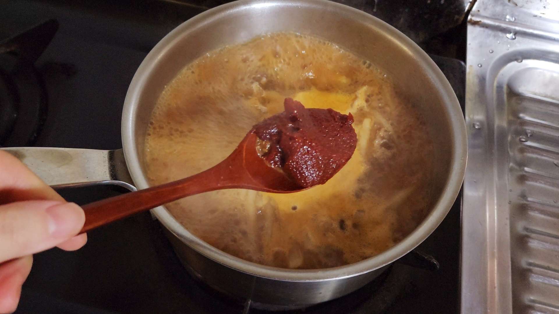 된장 3T를 넣고 센불에서 끓여줍니다.