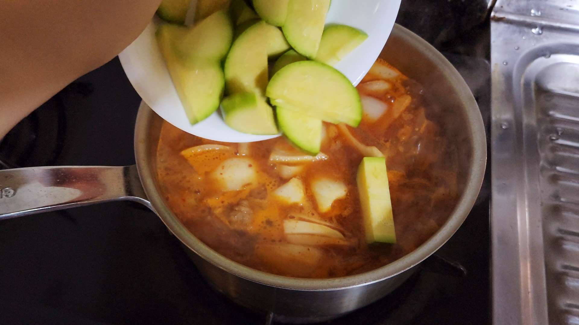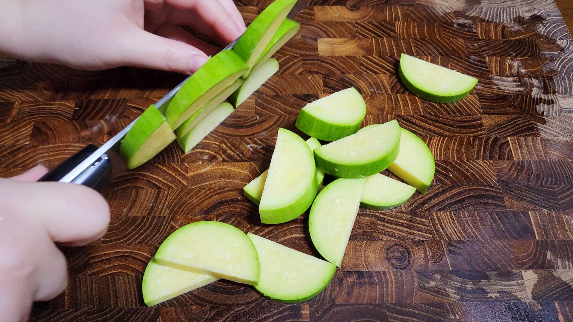애호박은 반달 모양으로 잘라줍니다.