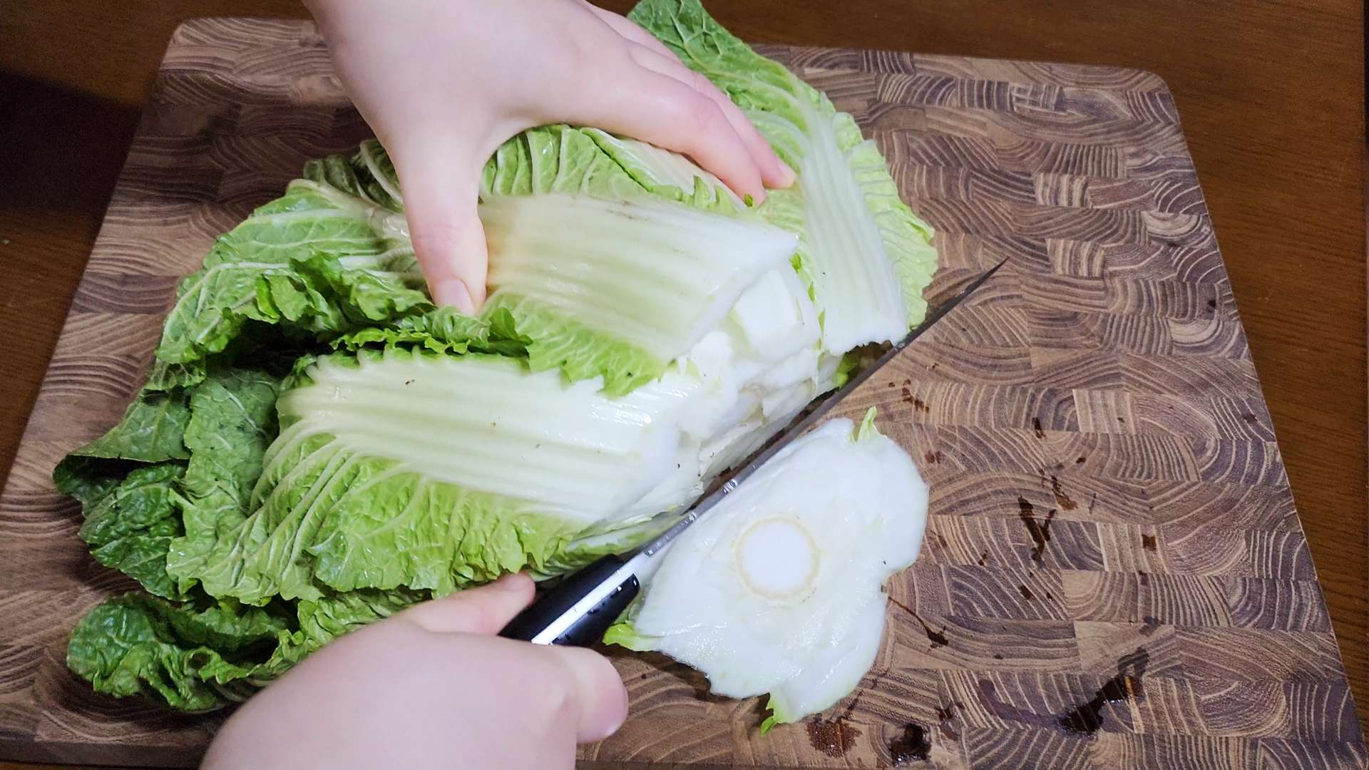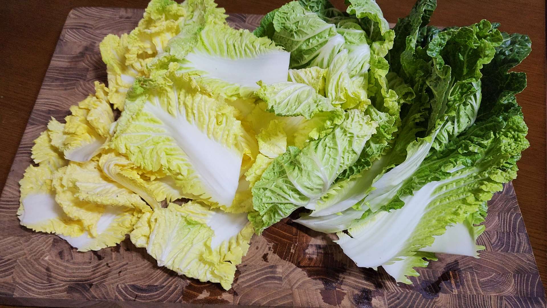 봄동은 밑동을 자르고 잎을 하나씩 떼어 흐르는 물에 씻어 물기를 제거해줍니다.