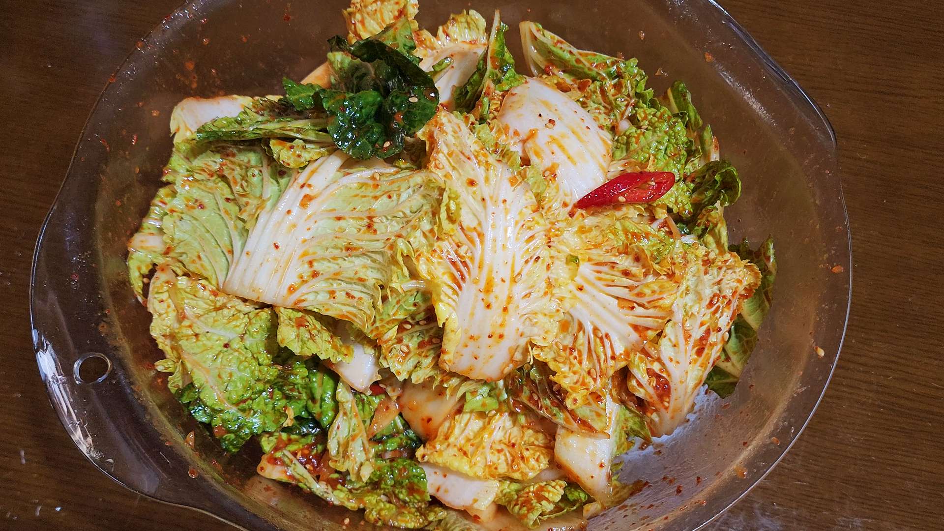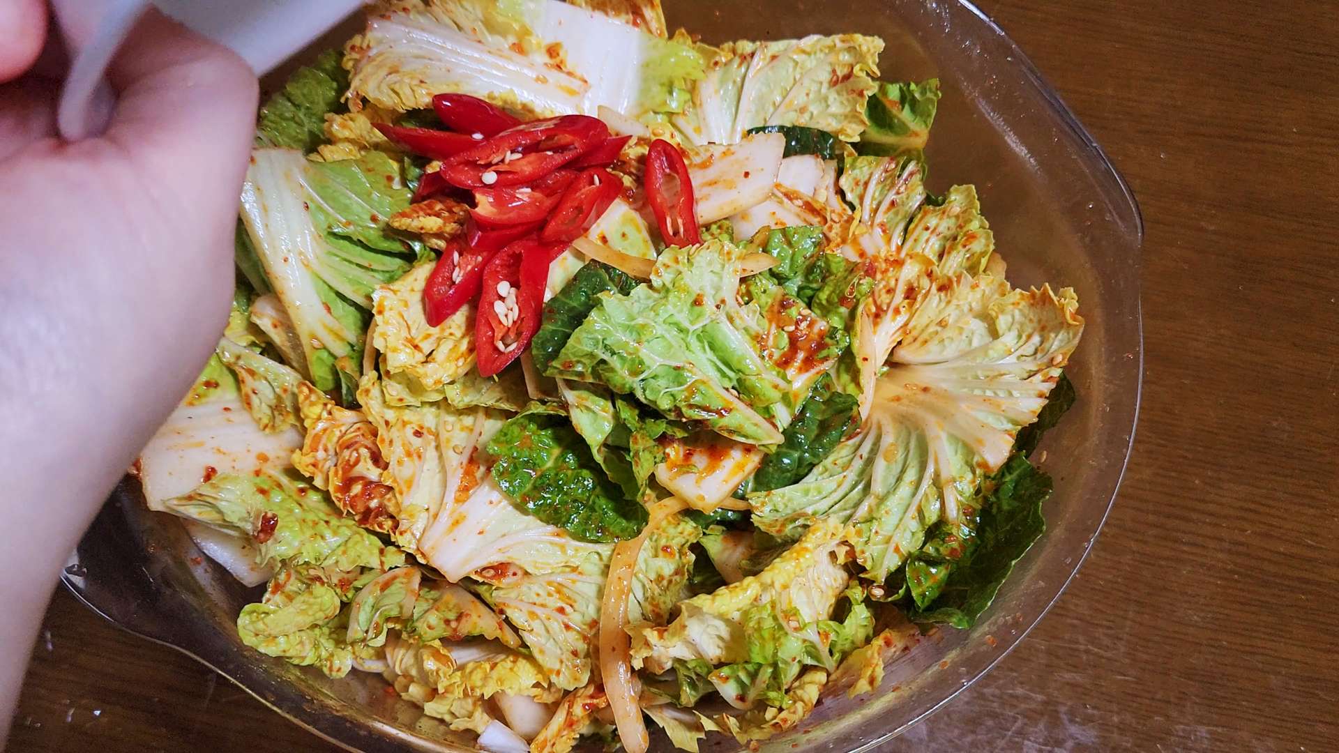 겉절이 양념: 고춧가루 3T, 멸치액젓 2T, 매실청 2T, 설탕 1T, 다진마늘 1T,