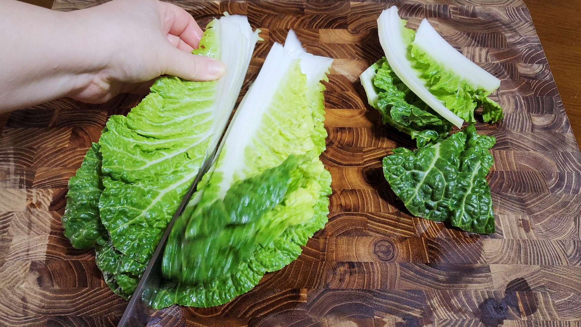 잎이 크면 반으로 자르고 3등분 해줍니다.