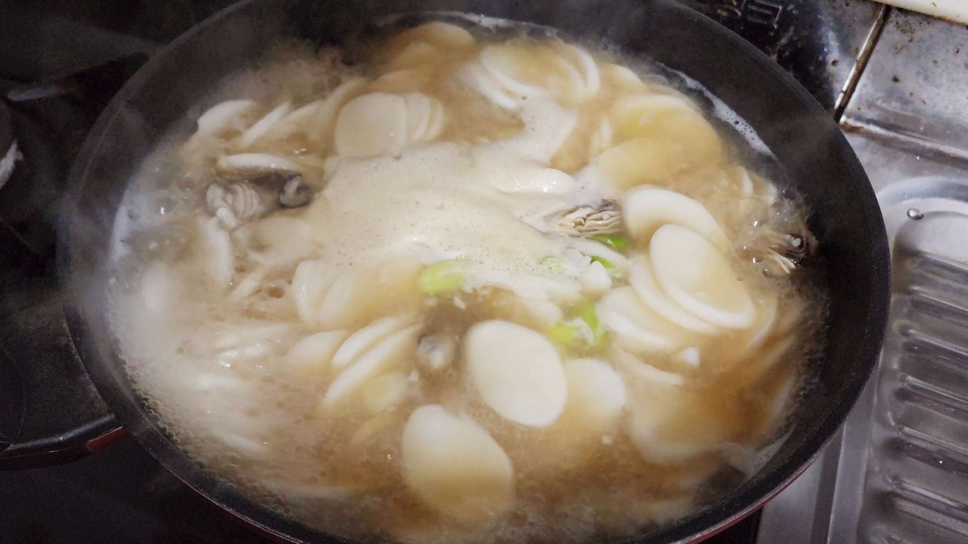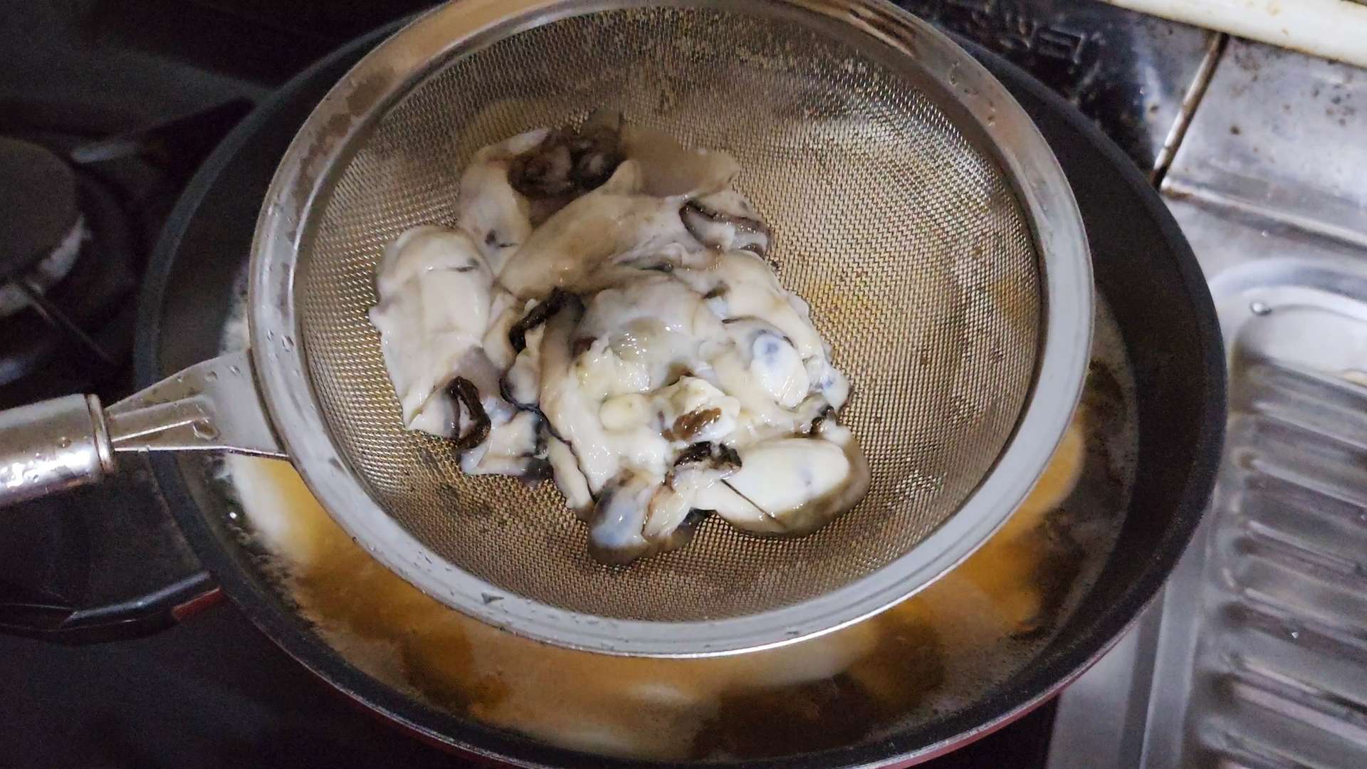 국물이 다시 끓어오르면 굴을 넣어줍니다.
