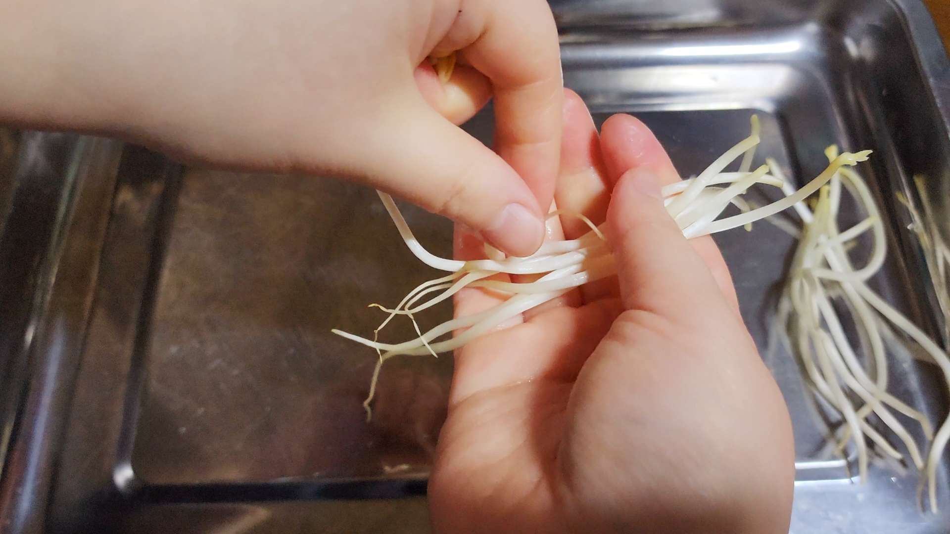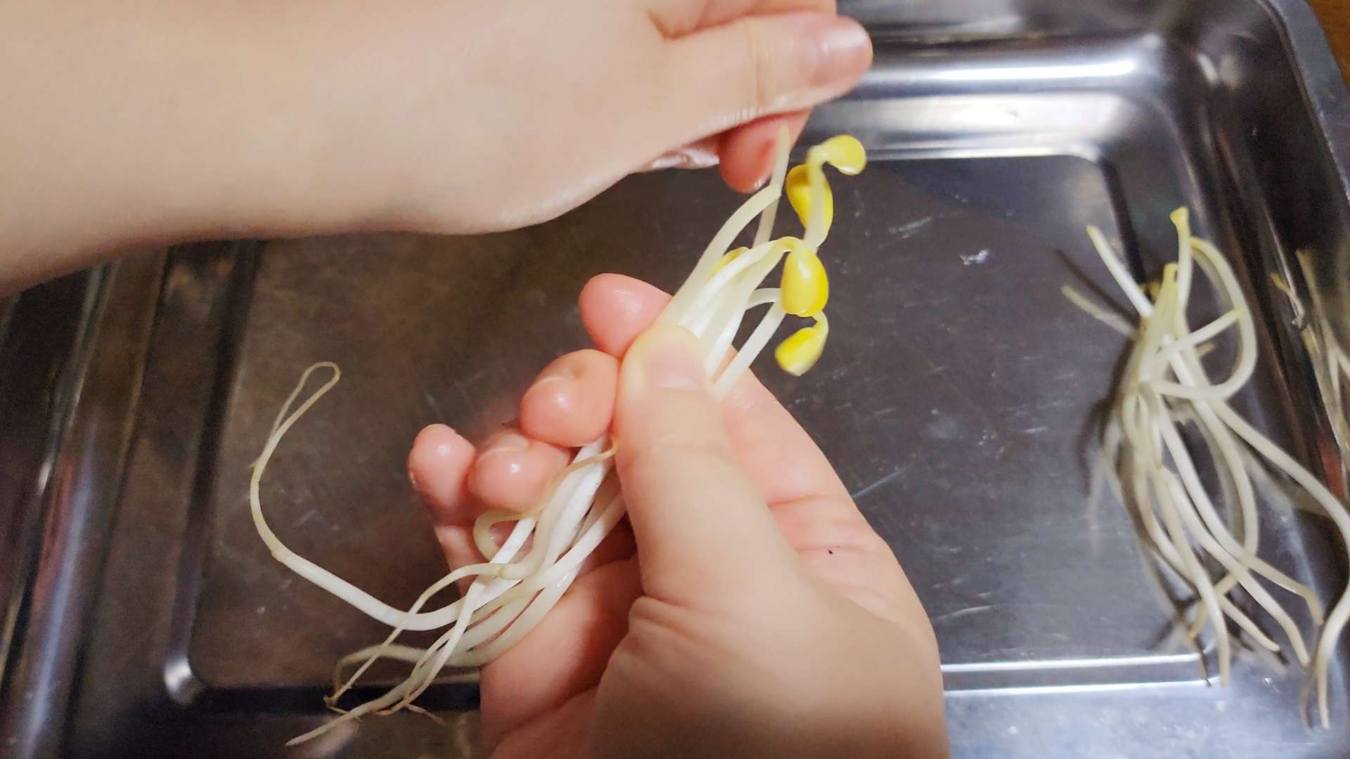 콩나물은 머리, 꼬리를 떼고 깨끗하게 씻어 물기를 제거해줍니다.
