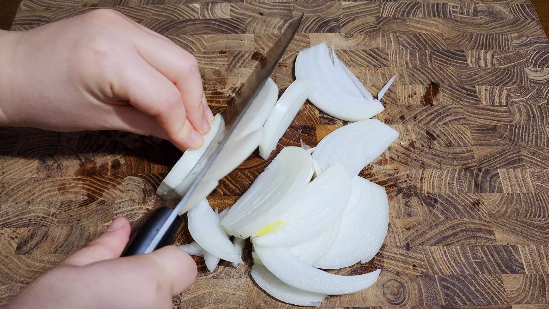 양파 1/2개, 물 100ml, 참기름 1T, 통깨, 식용유